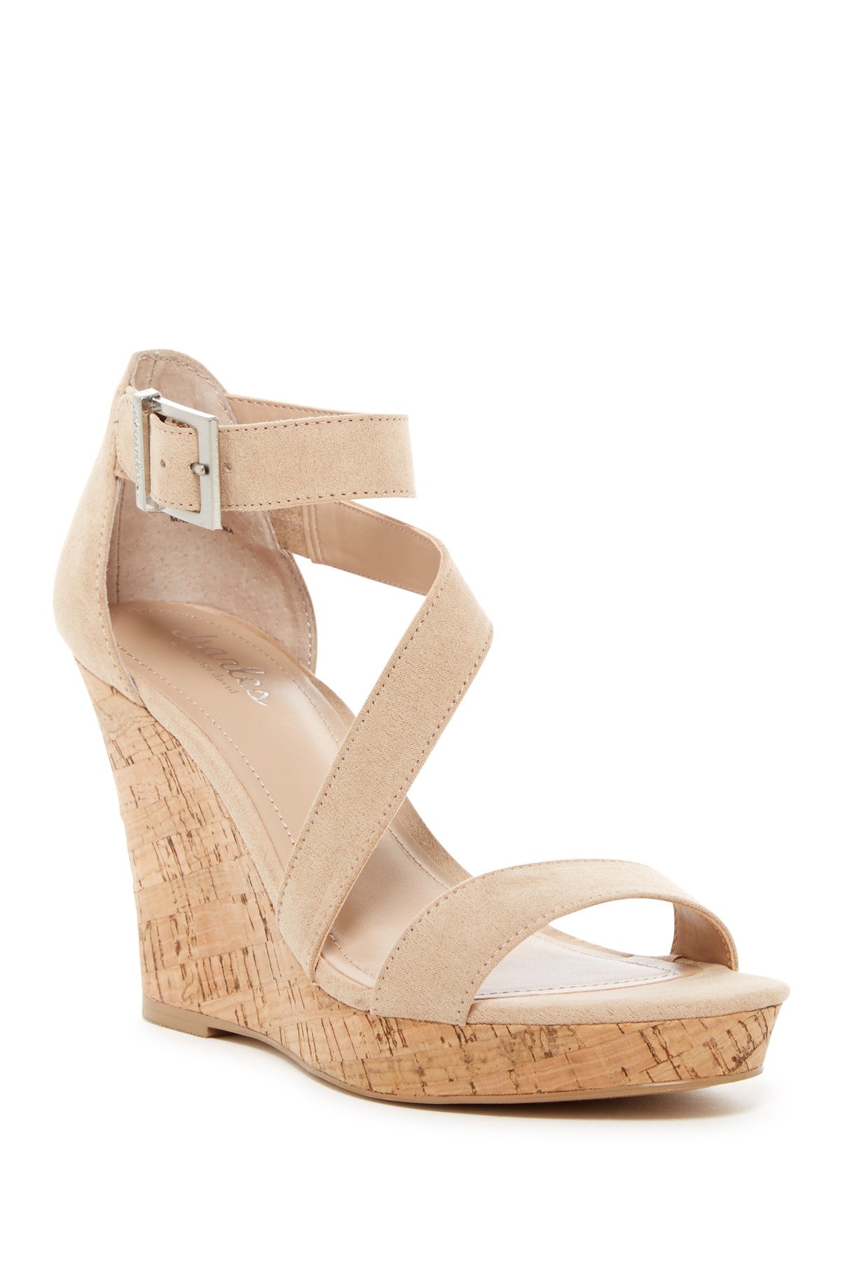Charles by Charles David LeAnna Nude Strap Cork Platform Wedge Heel Sandals