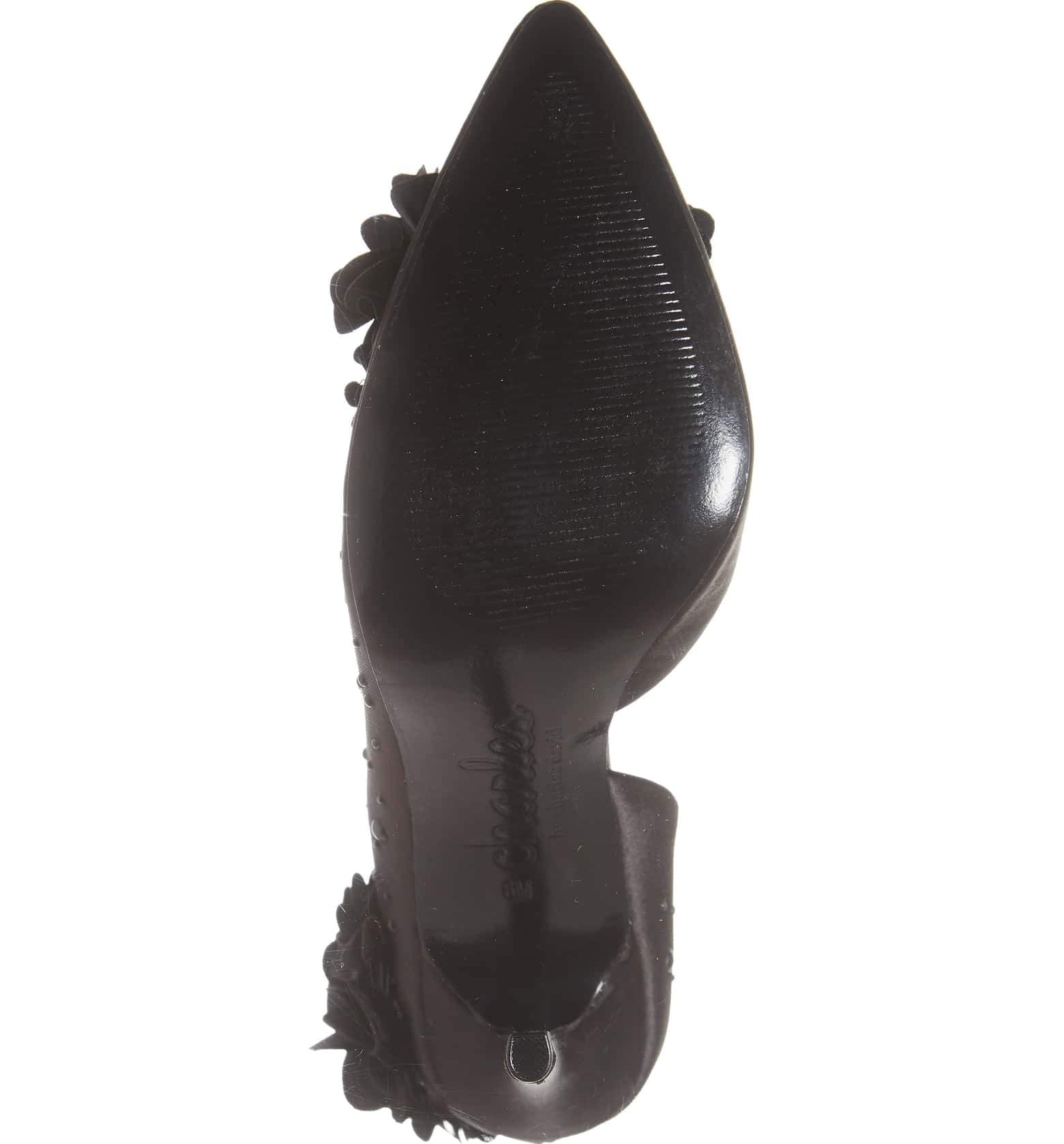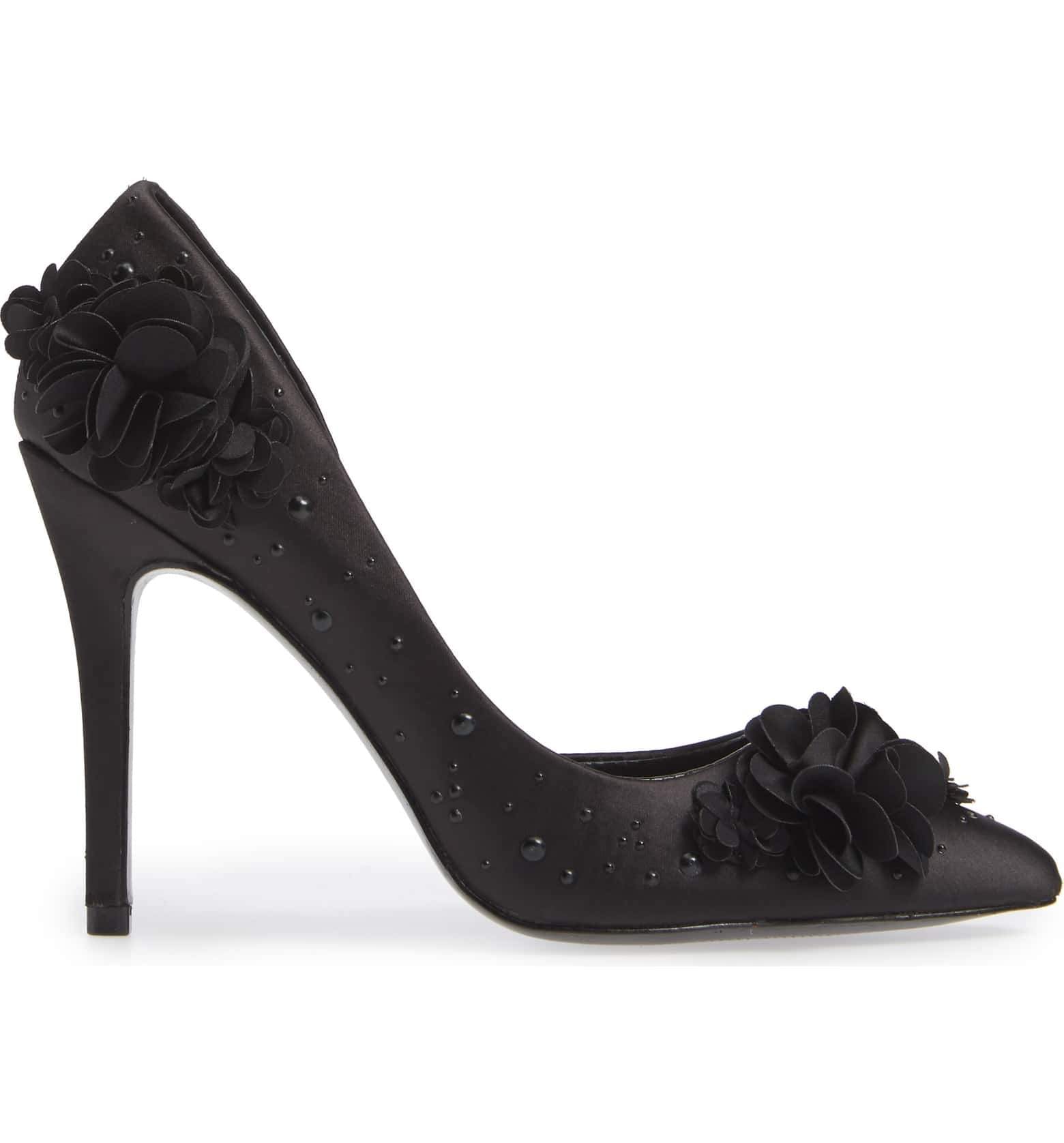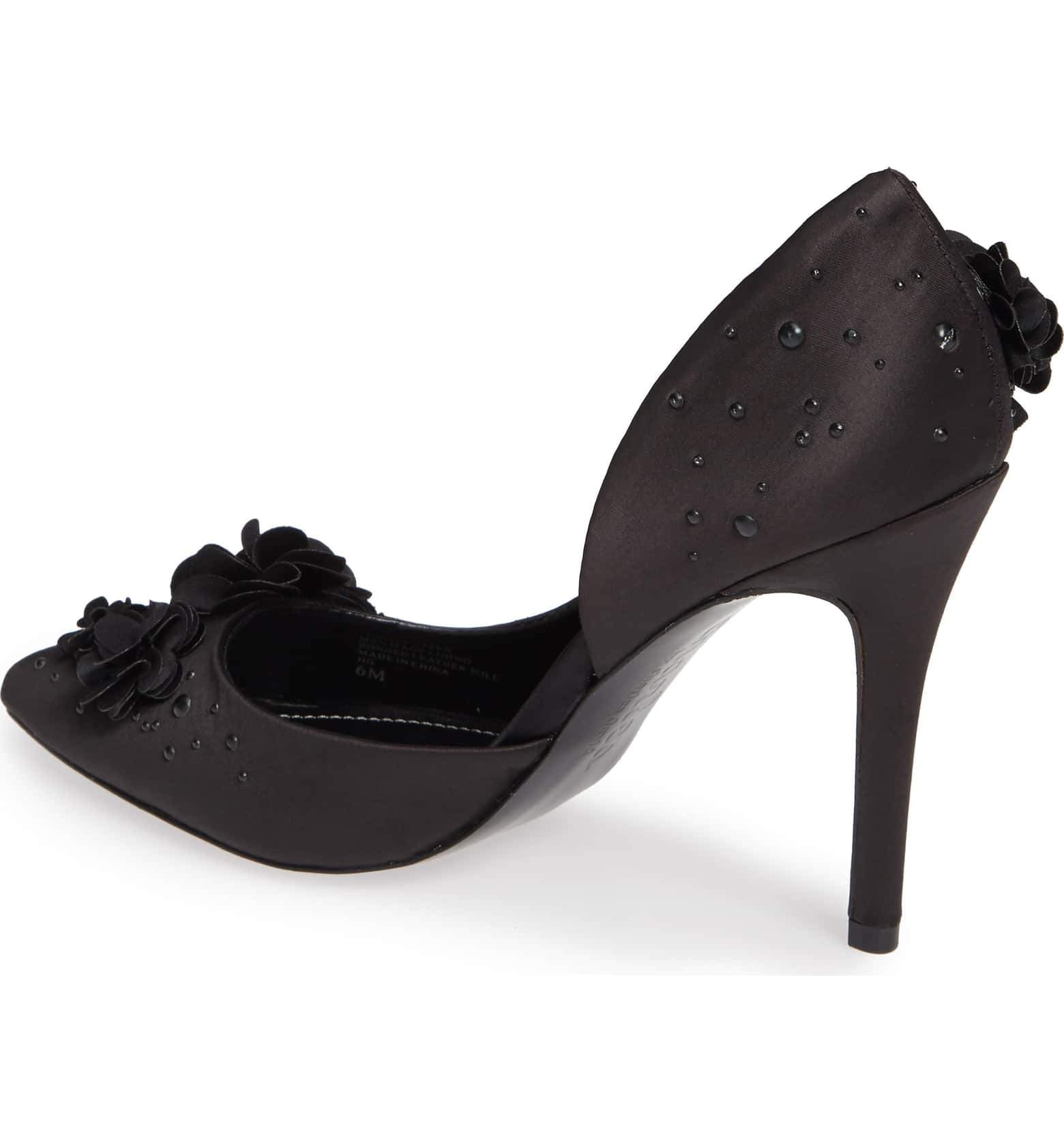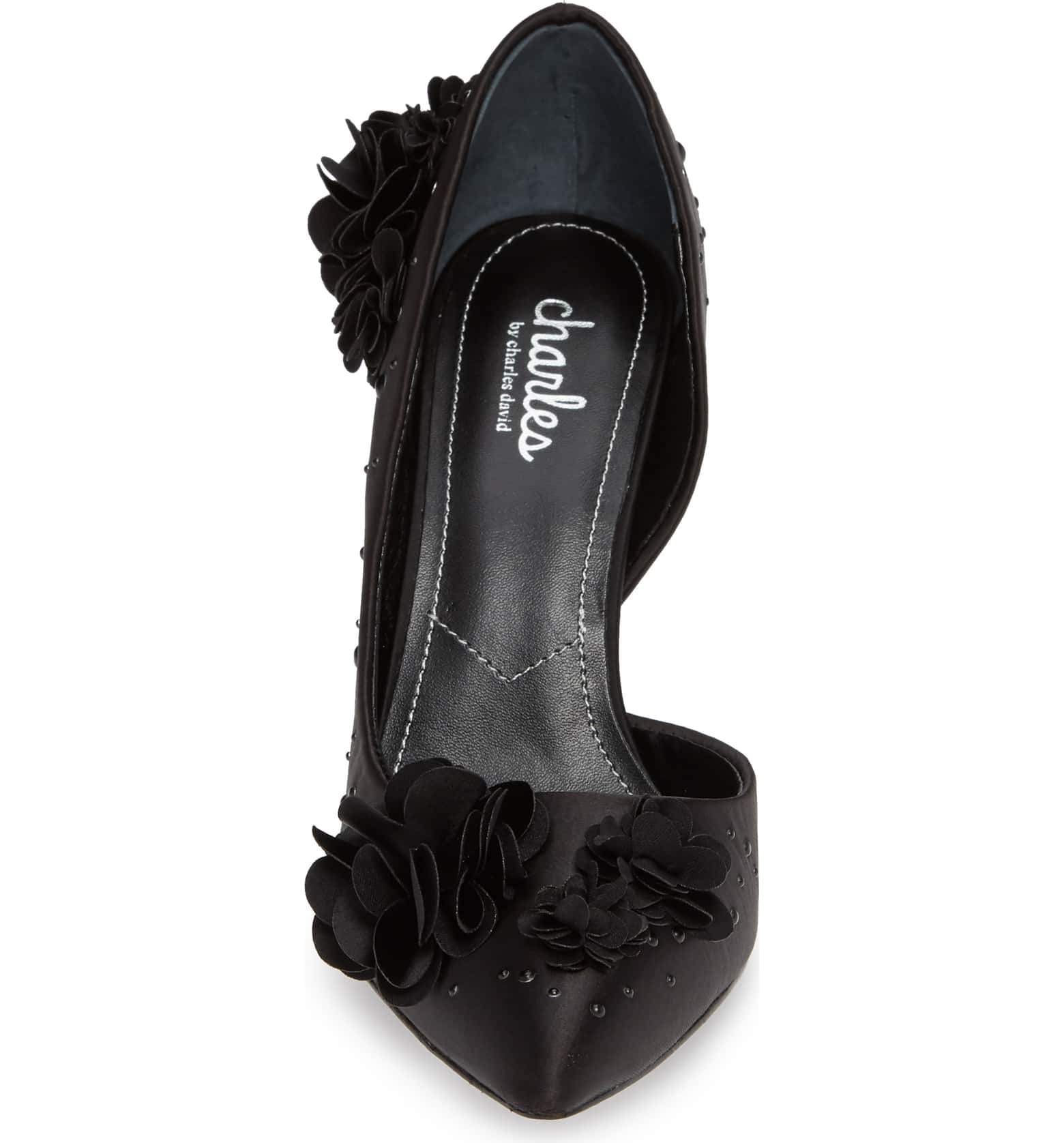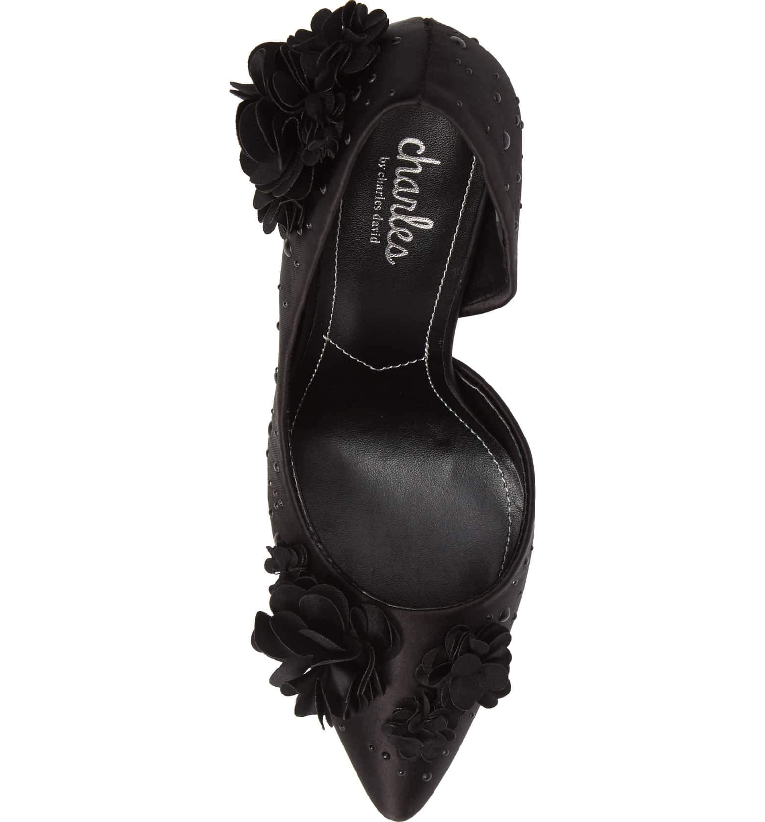 Charles David Black Pointed Flower Embellished Satin Formal Stiletto Pump