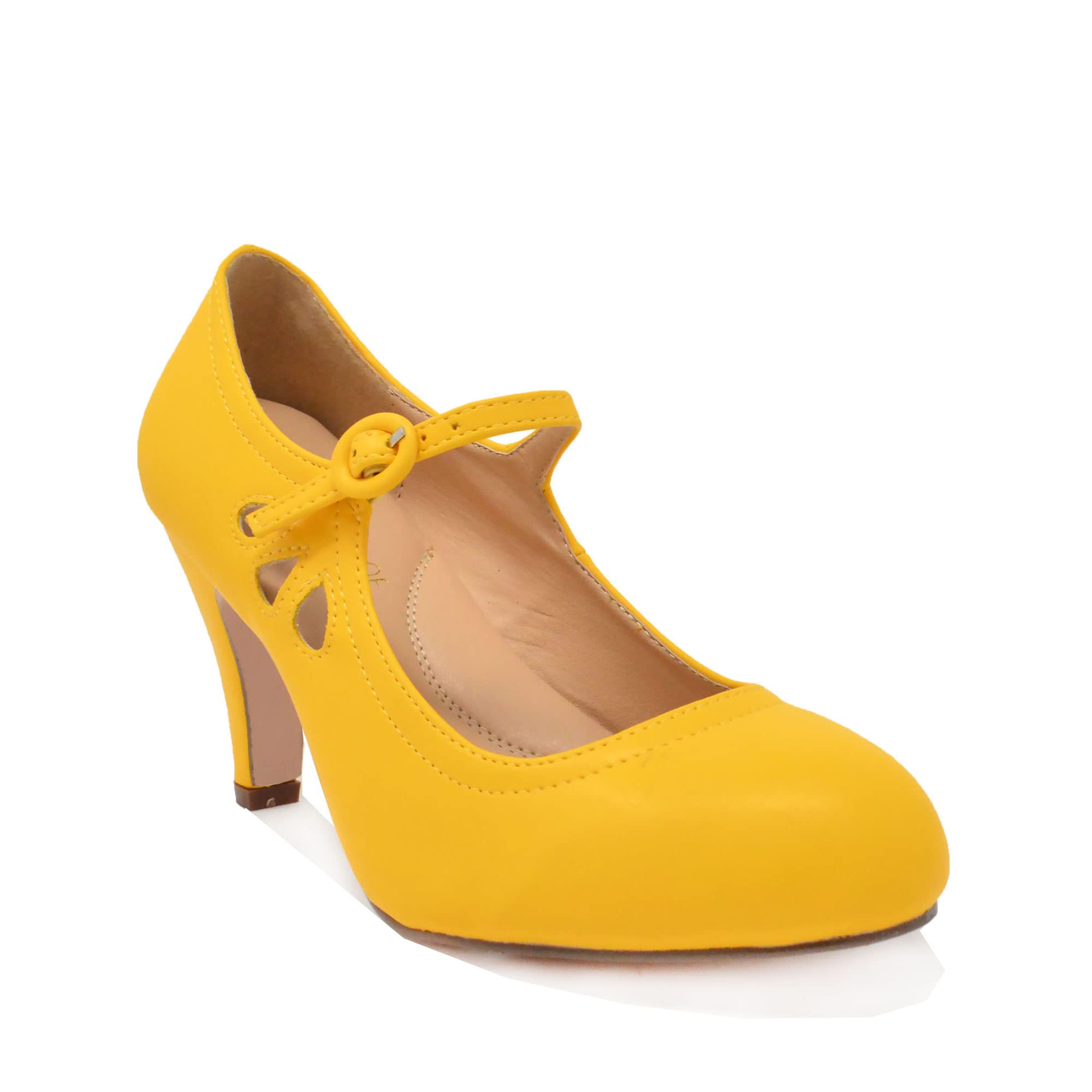 Chase & Chloe Kimmy-21 Round Toe Pierced Mid Heel Mary Jane Style Dress Pumps