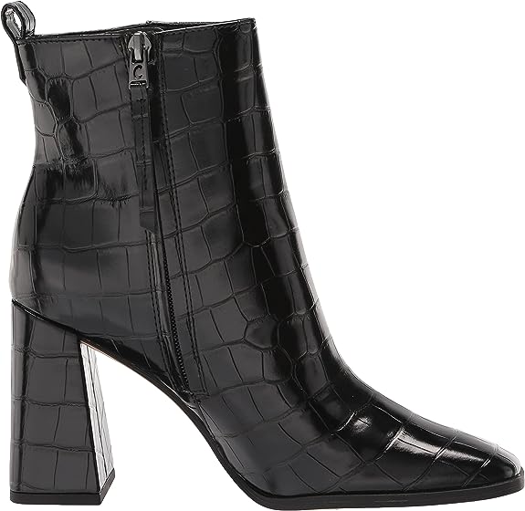 Circus By Sam Edelman Pascha Black Croc Print Square Toe Block Heel Fashion Boot