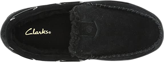 Clarks Black Venetian Suede Moccasin Loafers Rounded Toe Fur Lined Slippers