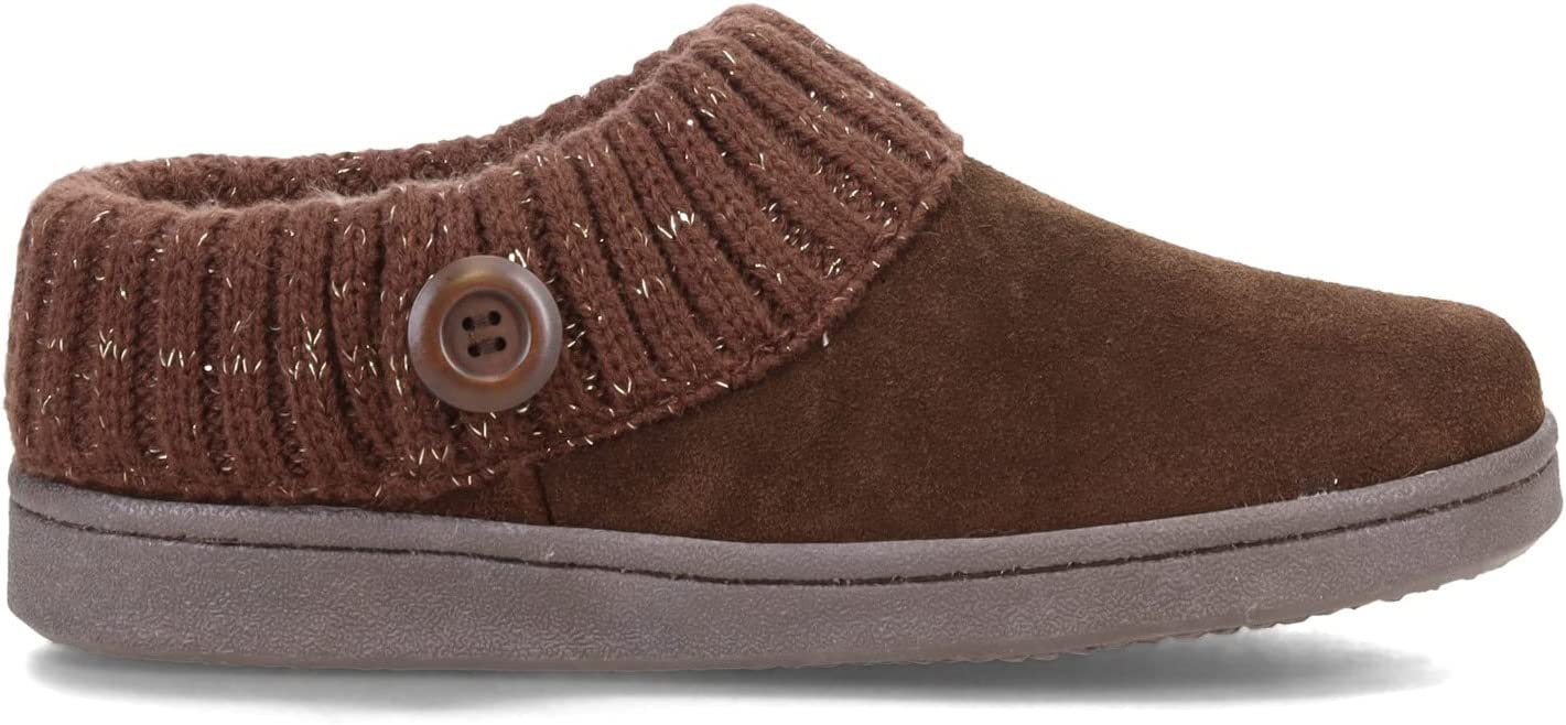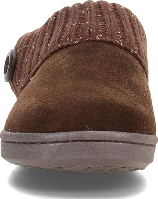 Clarks Dark Brown Knitted Collar Winter Clog Rounded Closed Toe Slipper