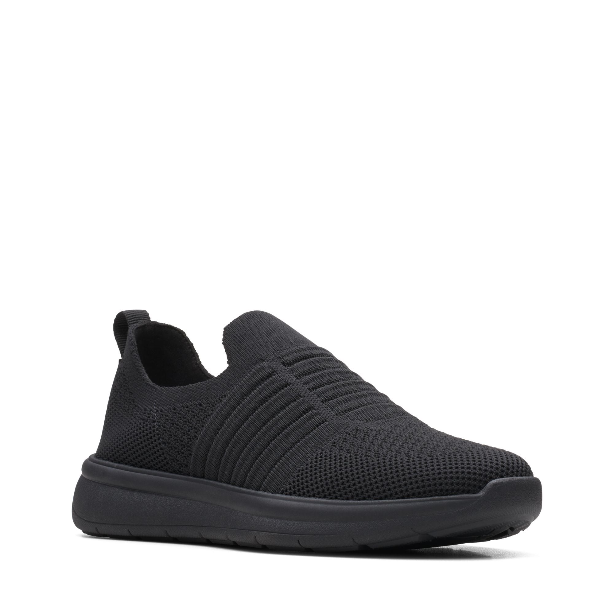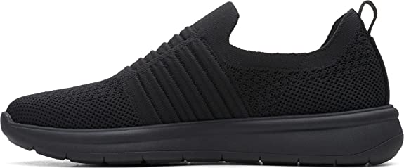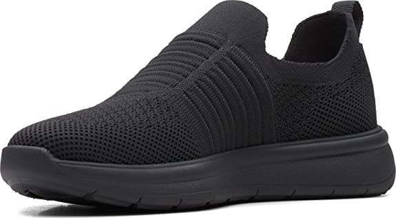 Clarks Ezera Black Textile Walk Slip-On Cloud Steppers Flat Fashion Sneakers