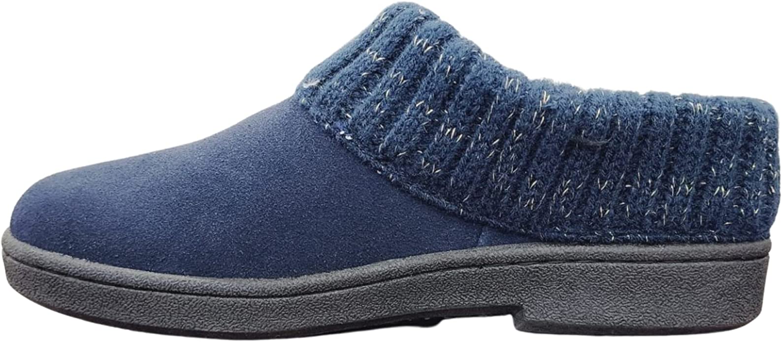 Clarks Navy Knitted Collar Winter Clog Rounded Closed Toe Slippers