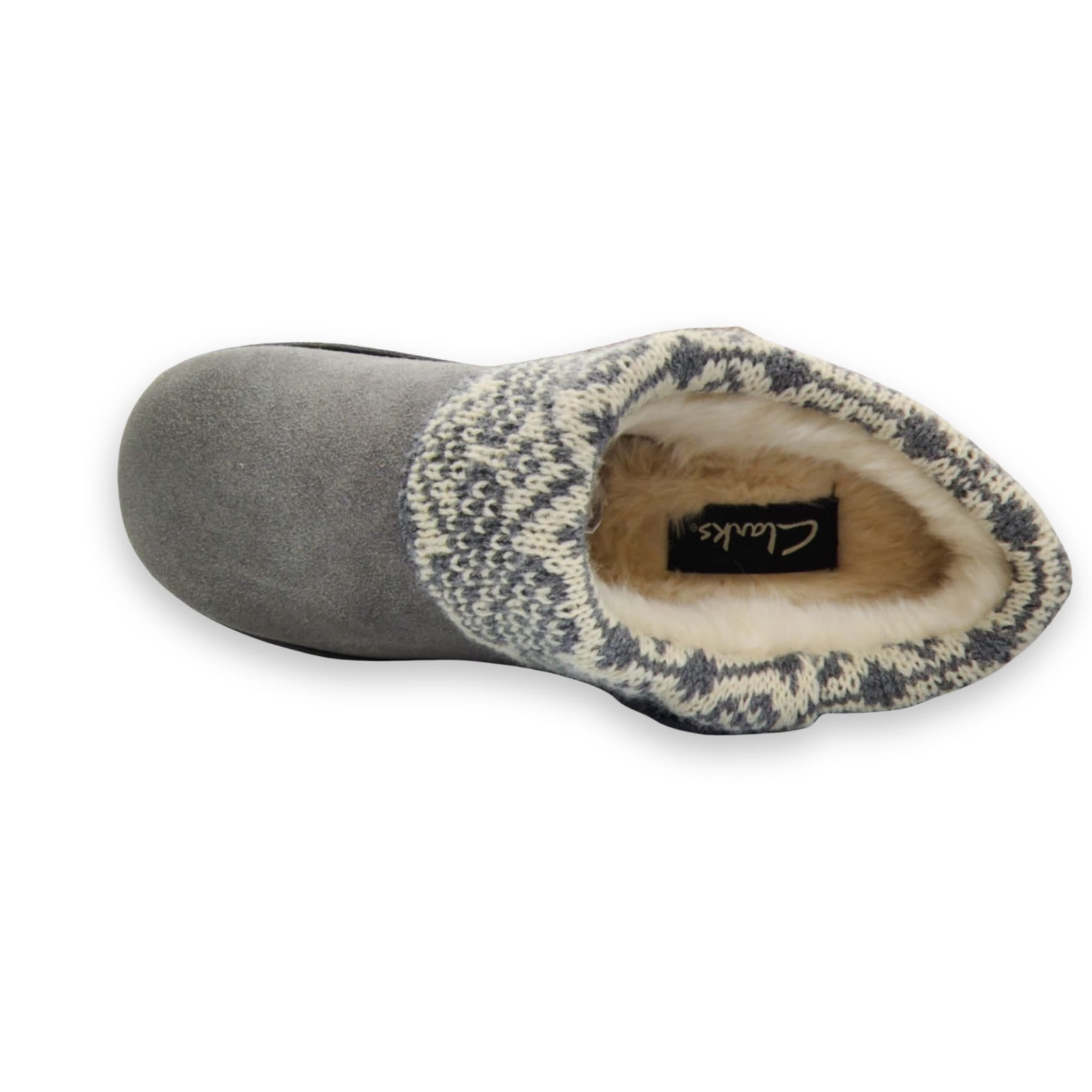 Clarks Women's Knitted Sweater Collar Suede Slippers - Faux Fur Linning Indoor/Outdoor TPR Outsoles & Cushioned Footbed