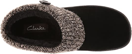 Clarks Womens Slipper Suede Leather Knitted Collar Clog Slippers - Plush Faux Fur Lining