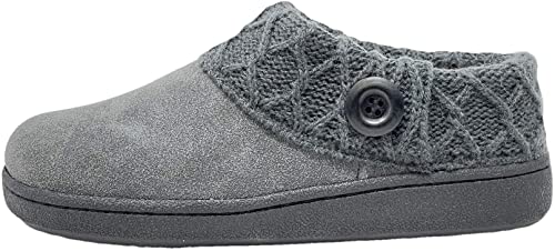 Clarks Womens Slipper Suede Leather Knitted Collar Clog Slippers - Plush Faux Fur Lining