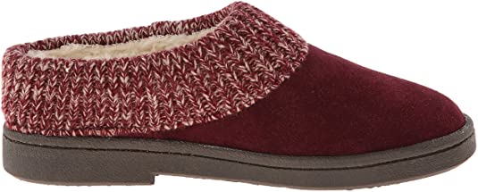 Clarks Womens Slipper Suede Leather Knitted Collar Clog Slippers - Plush Faux Fur Lining