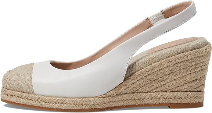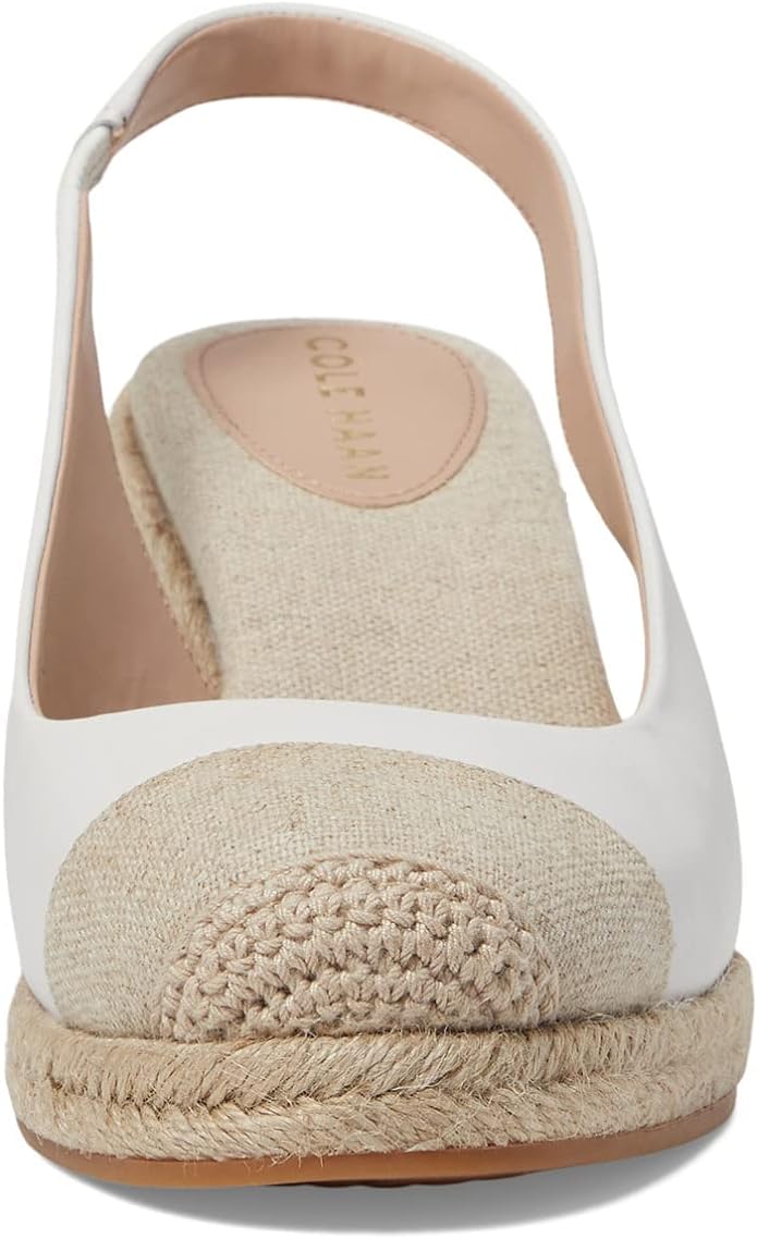 Cole Haan Cloudfeel White Leather Natural Linen Slingback Wedge Heeled Sandals
