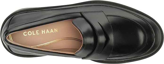 Cole Haan Grand Ambition Westerly Black Leather Slip On Block Heeled Loafers