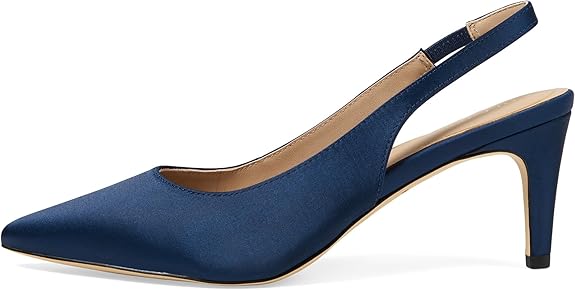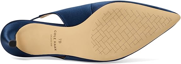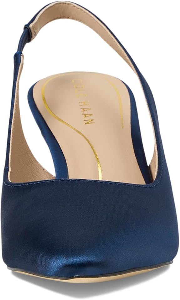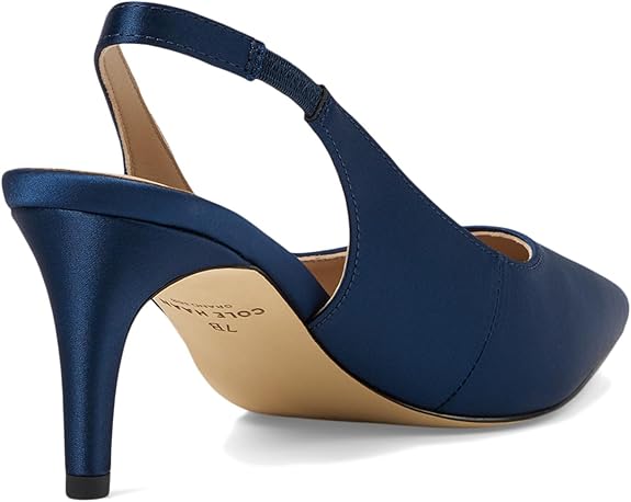 Cole Haan Vandam Sling Navy Satin Pointed Toe Kitten Heeled Dress Pumps