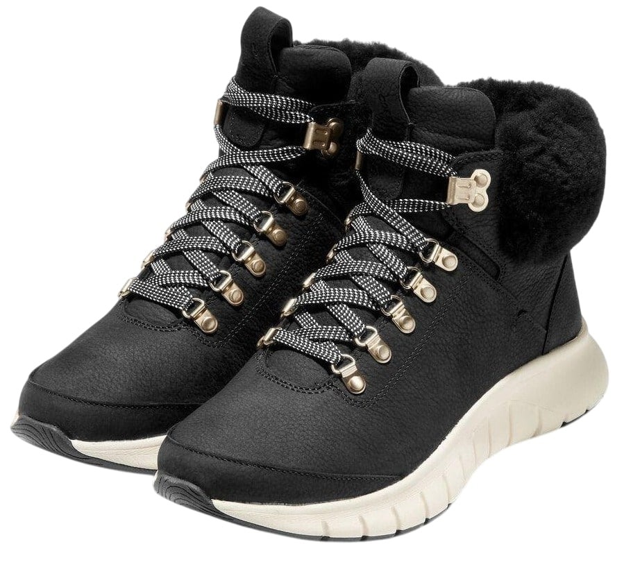 Cole Haan Zerogrand Field Hiker Black/Shearling/Waterproof Lace Up Ankle Boots
