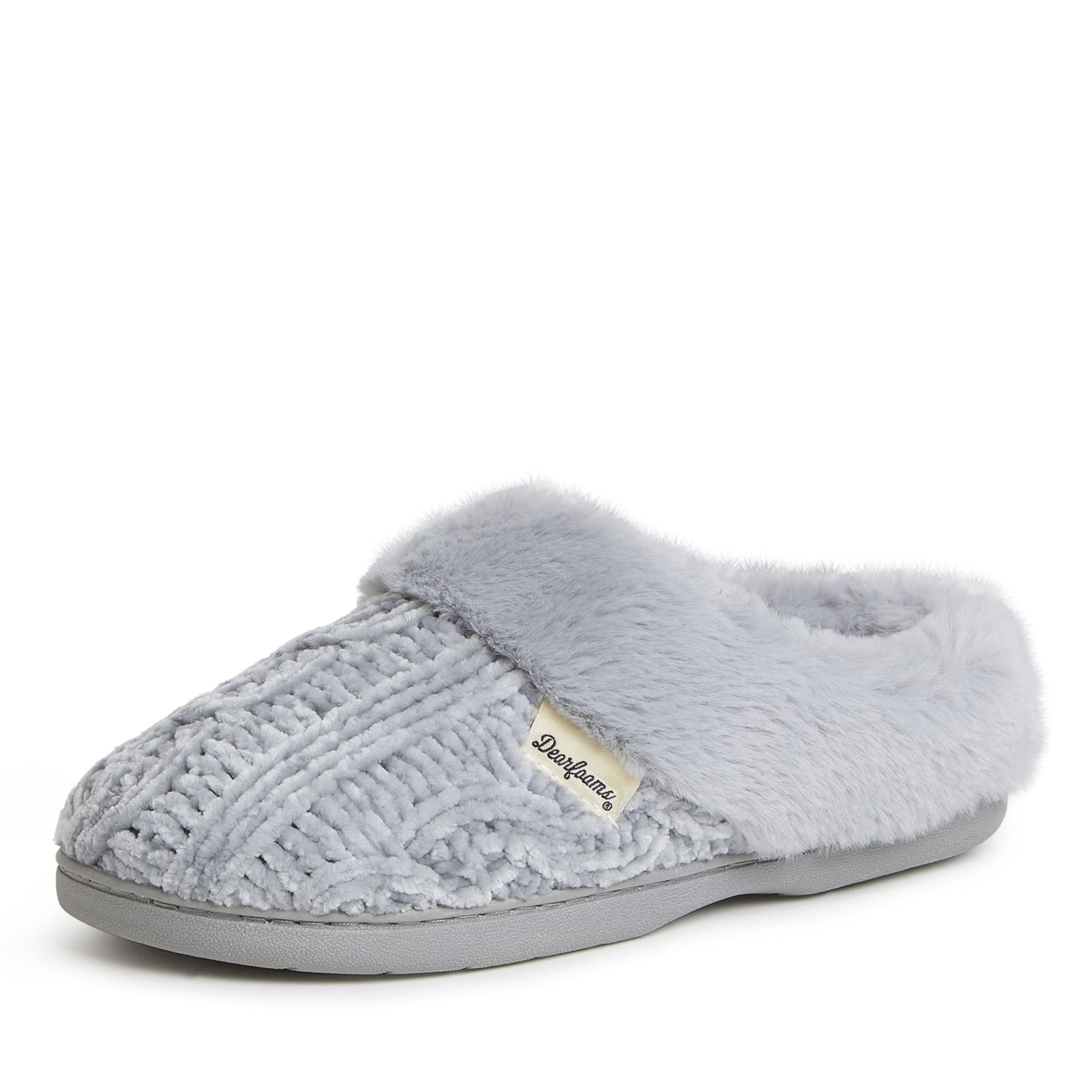 Dearfoams Women's Claire Fuzzy Memory Foam Cable Knit Clog House Slippers 11-12