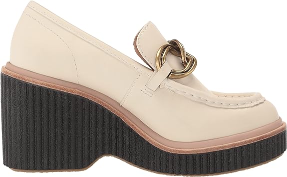Dolce Vita Brenan Off White Leather Slip On High Wedge Heel Fashion Loafers