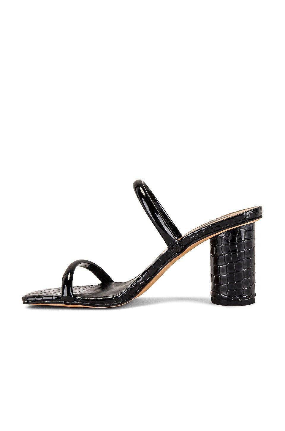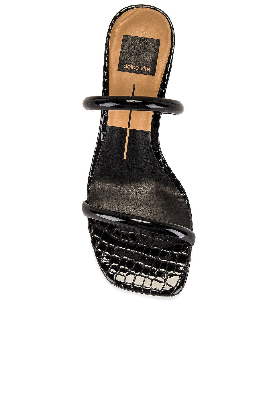 Dolce Vita Noles Midnight Patent Croco Leather Slip On Square Toe Heeled Sandals