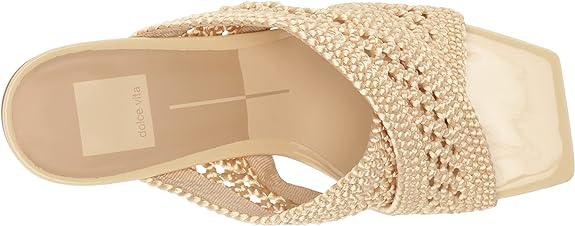 Dolce Vita Patch Vanilla Woven Slip On Squared Open Toe Block Heeled Sandals