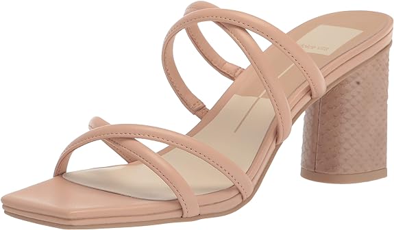 Dolce Vita Patsi Cream Leather Slip On Squared Open Toe Block Heeled Sandals
