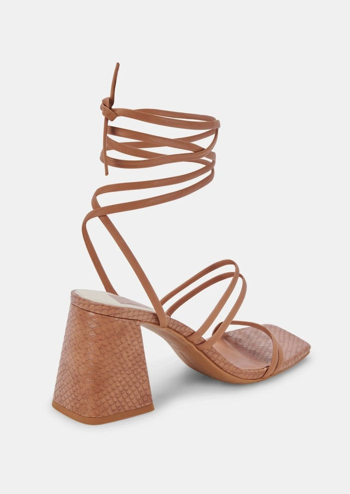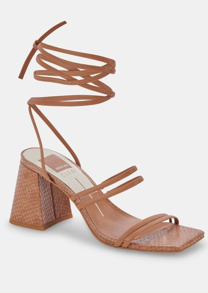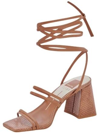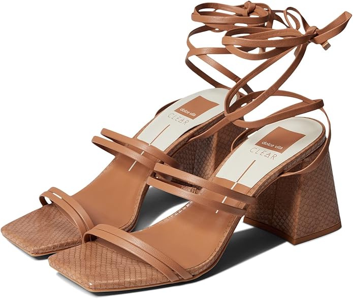 Dolce Vita Paxx Luggage Stella Tie Up Squared Toe Strappy Block Heeled Sandals