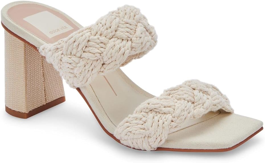 Dolce Vita Play Ivory Rope Slip On Squared Open Toe Block Heeled Dress Sandals