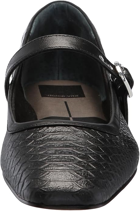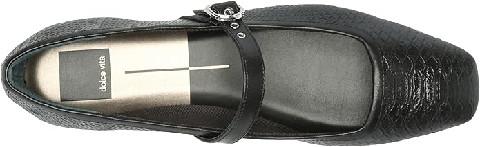 Dolce Vita Rodni Onyx Snake Embossed Mary Jane Squared Toe Fashion Ballet Flats
