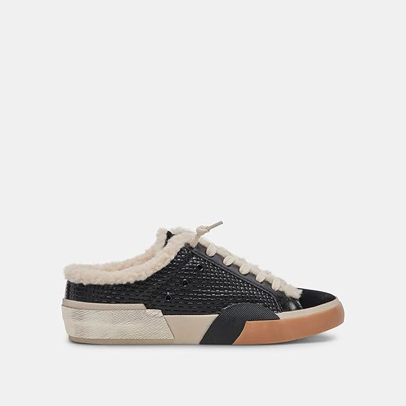 Dolce Vita Zantel Black Woven Lace Up Faux Fur Low Top Fashion Sneakers