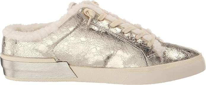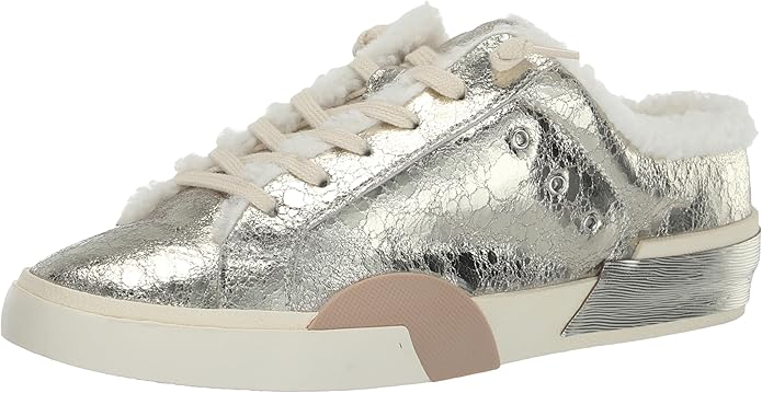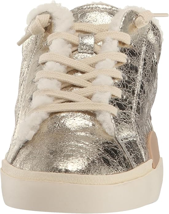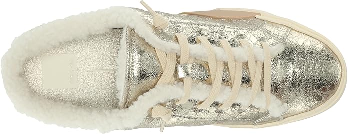 Dolce Vita Zantel Platinum Distressed Leather Lace Up Faux Fur Low Top Sneakers