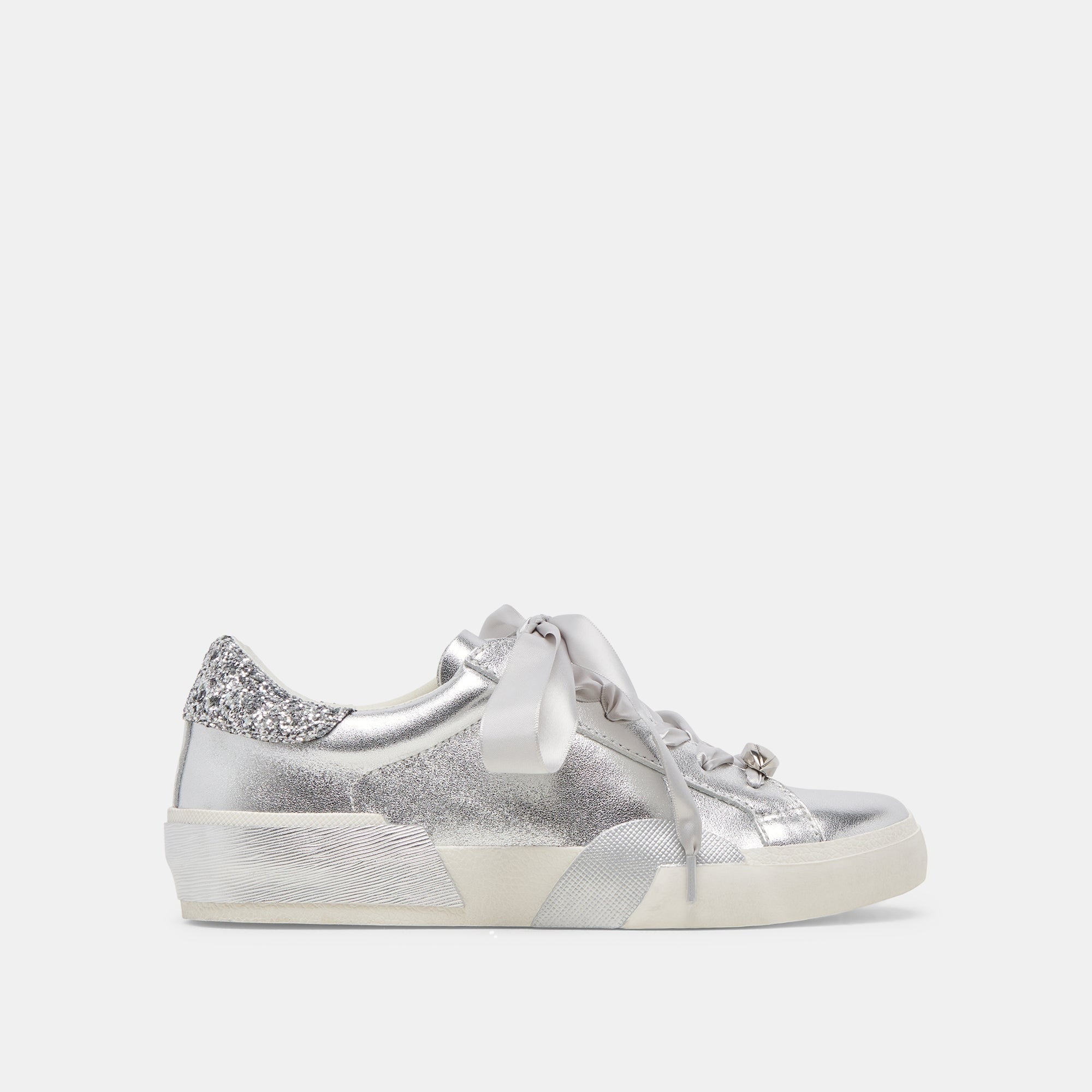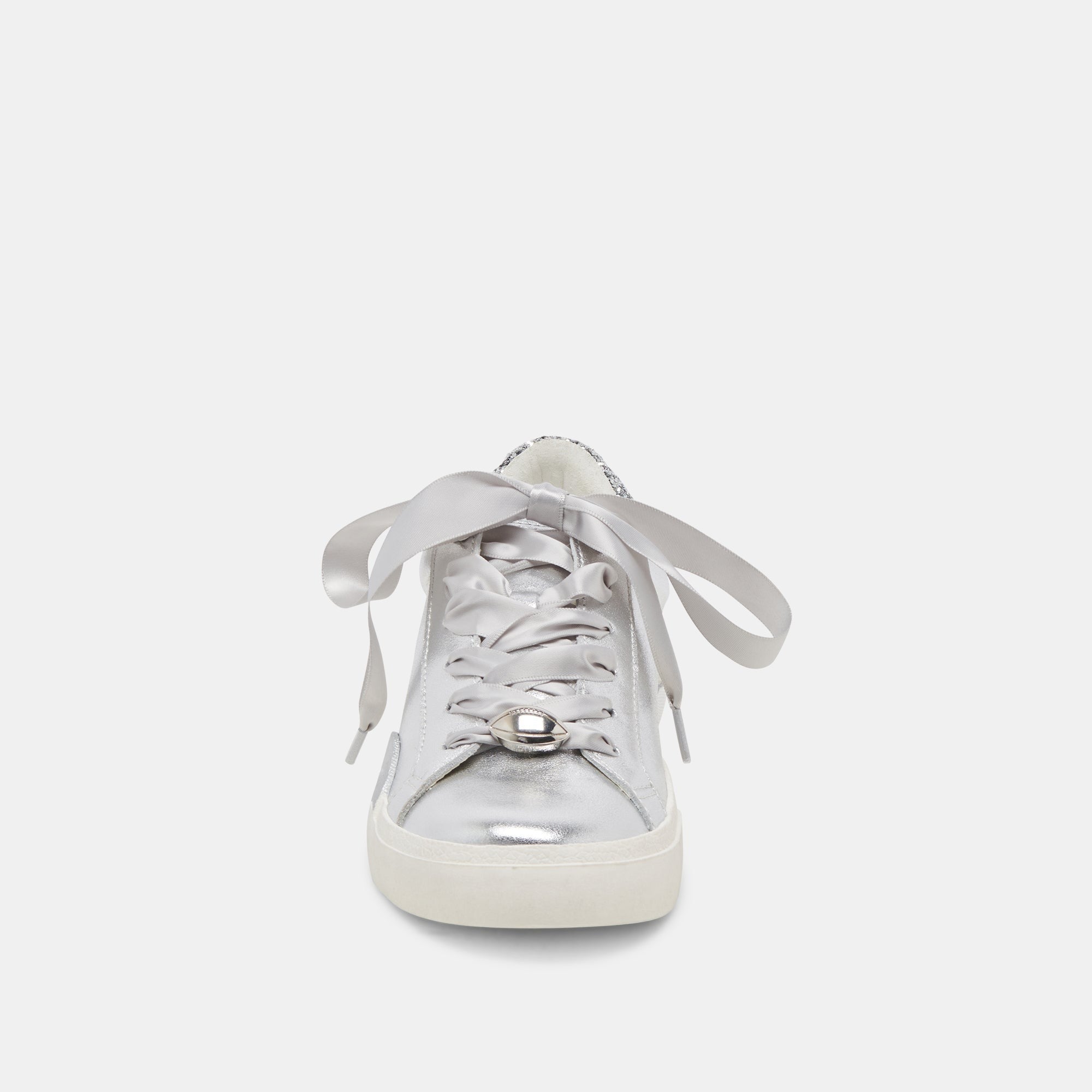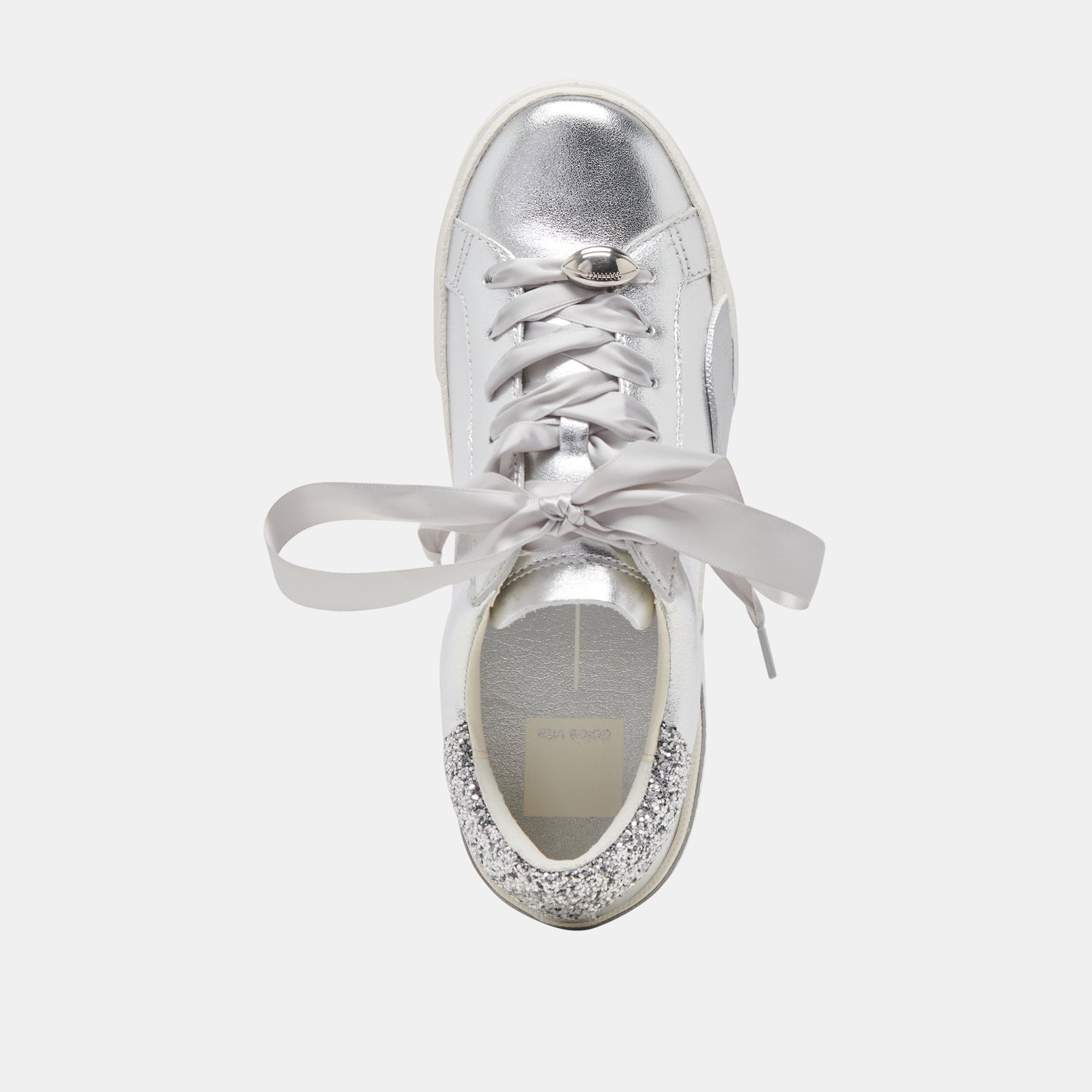 Dolce Vita Zina Silver Multi Leather Lace Up Low Top Round Toe Fashion Sneakers