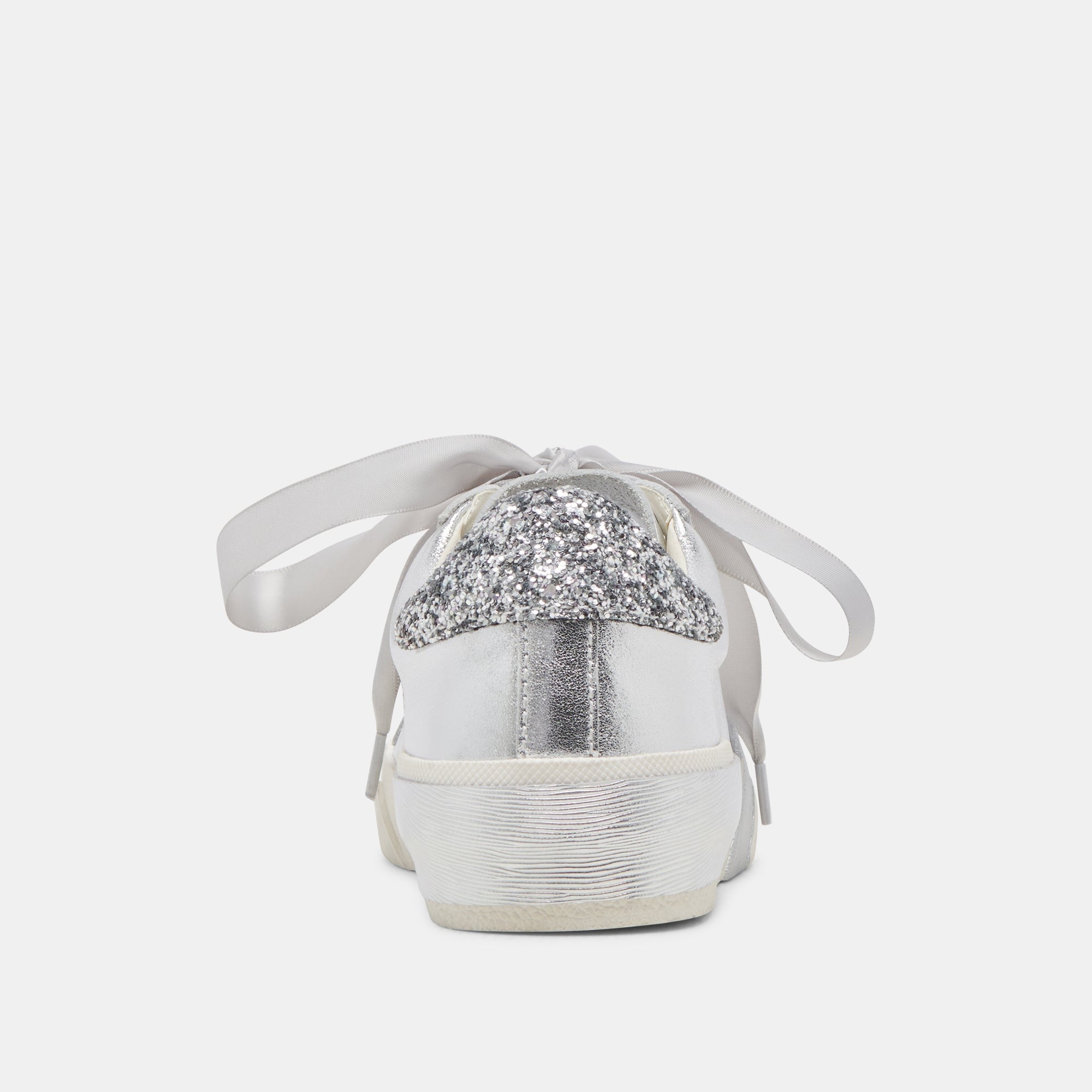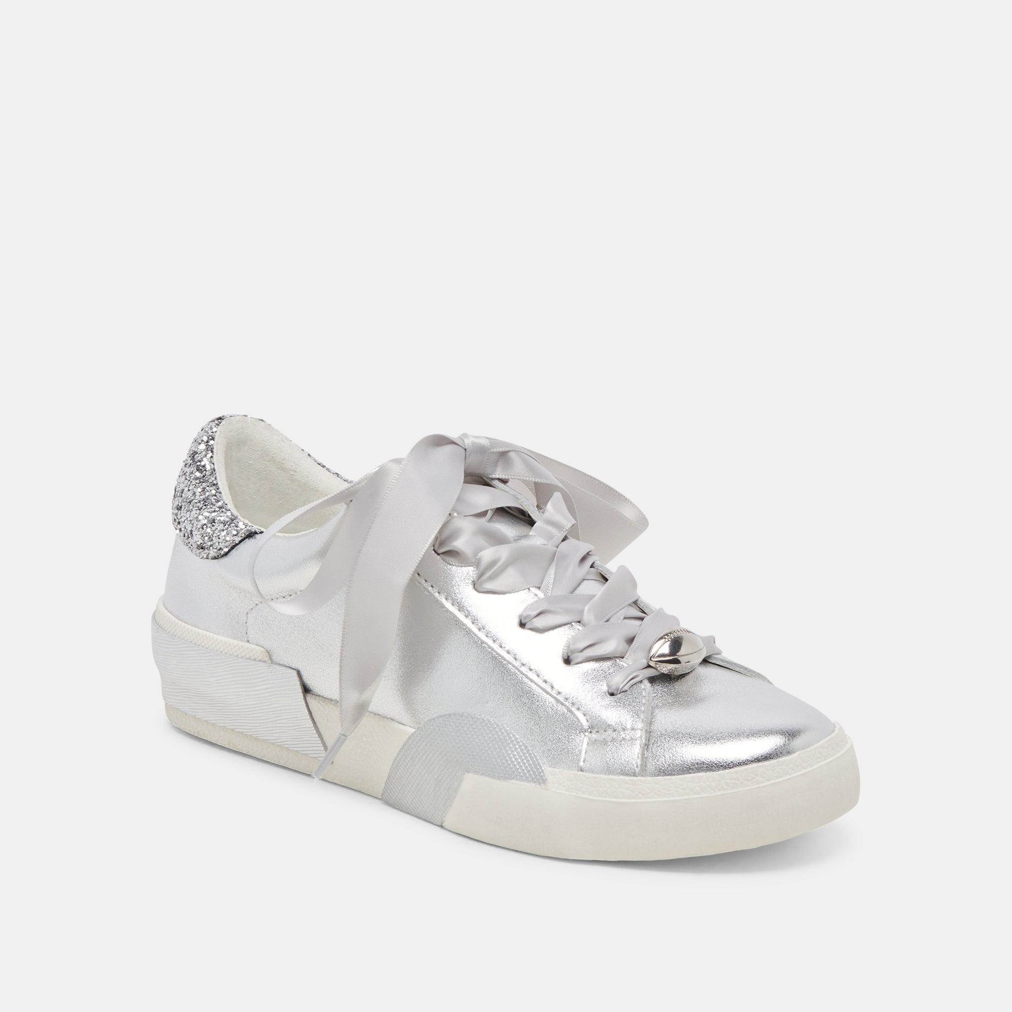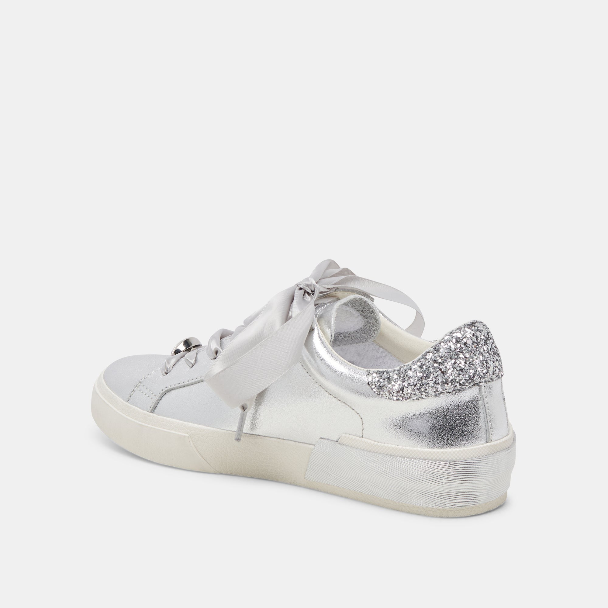 Dolce Vita Zina Silver Multi Leather Lace Up Low Top Round Toe Fashion Sneakers