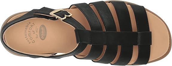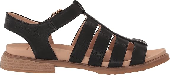 Strappy womens sandals that look good, feel good, do good. SUSTAINABLY CRAFTED: Linings made from low-chemical faux leather. MATERIALS: Faux leather straps. FIT: Instep strap with adjustable buckle closure. SUSTAINABLE COMFORT: Insole Technology with cushioning, comfort, & support. MOVEMENT: Lightweight, flexible construction moves with you. STYLE: Fisherman sandal with iconic buckle detail, cushioned footbed, and 1 1/3 inch heel. CONSCIOUSLY PACKAGED: This style is shipped in a box made with recyclable materials & soy-based inks. Soak up rays for days in these gladiator sandals for women with standout details and cushioned comfort.