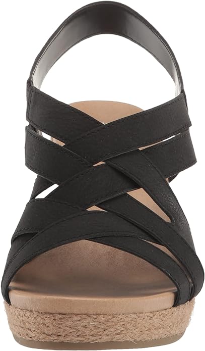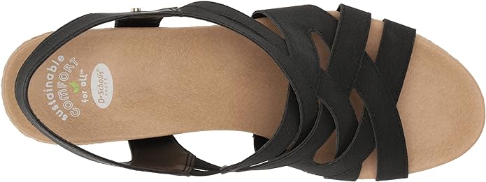 Dr. Scholl's Everlasting Black Smooth Open Toe Slingback Wedge Espadrille Sandal