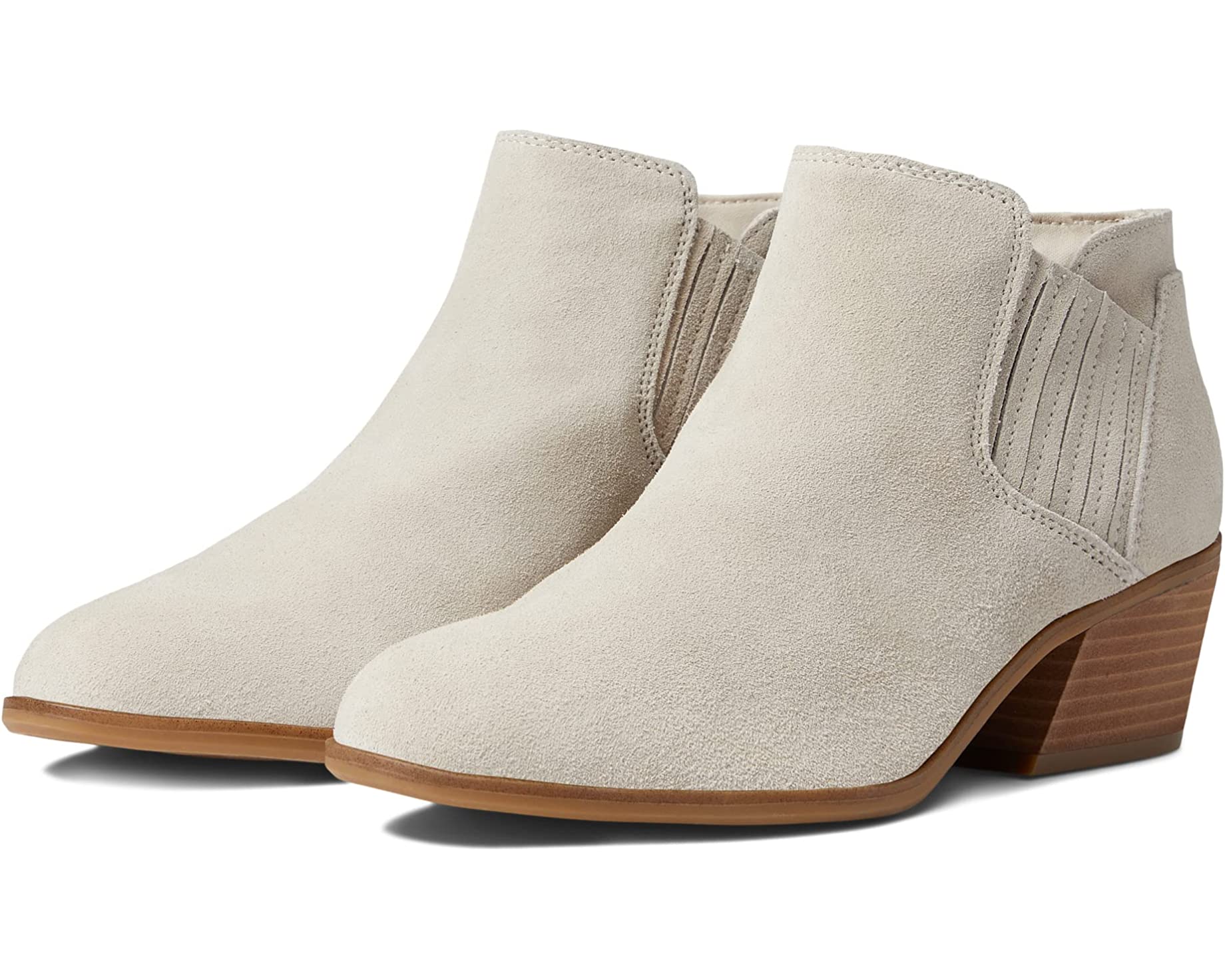 Dr. Scholl's Libra Oyster Leather Stacked Heel Pull On Almond Toe Ankle Boots