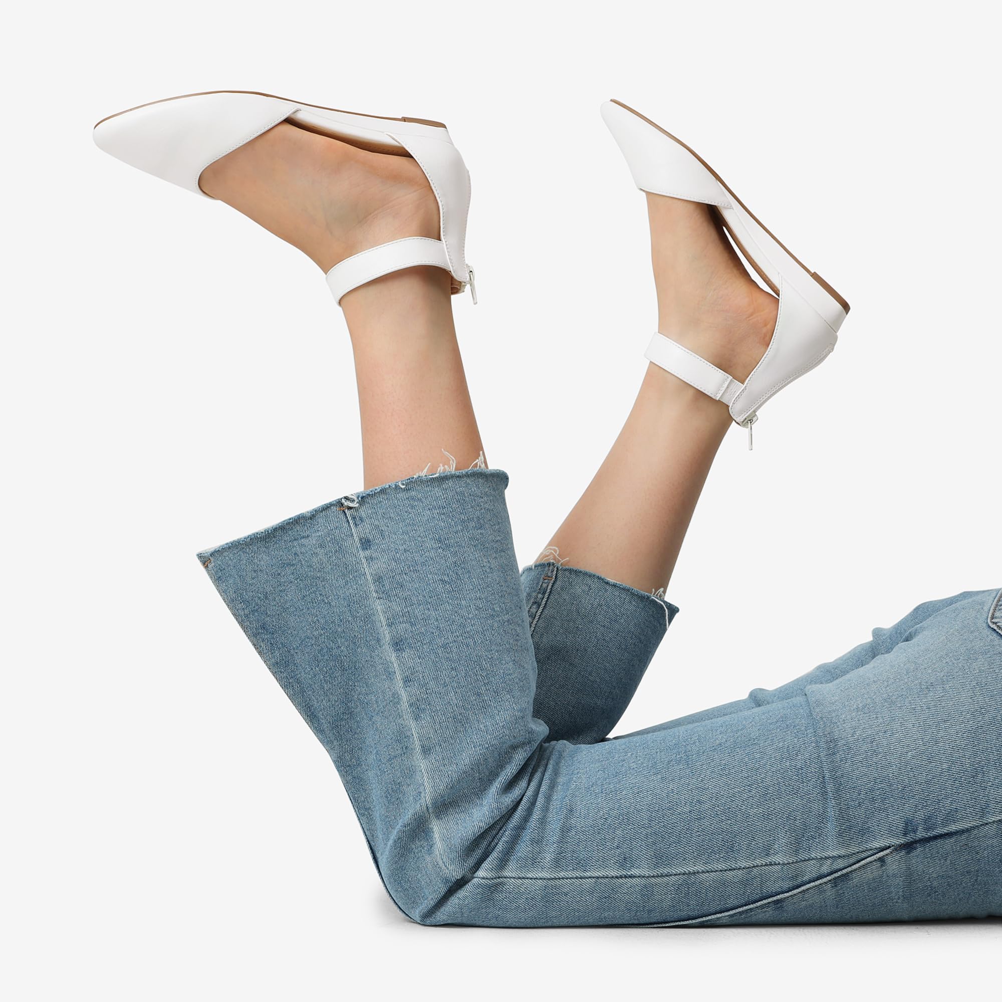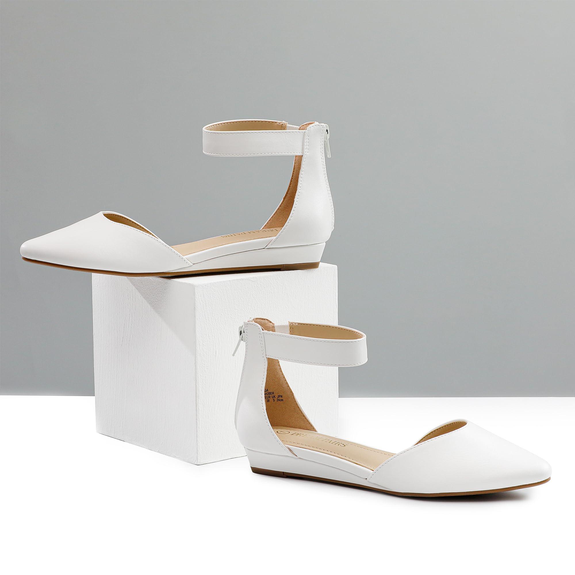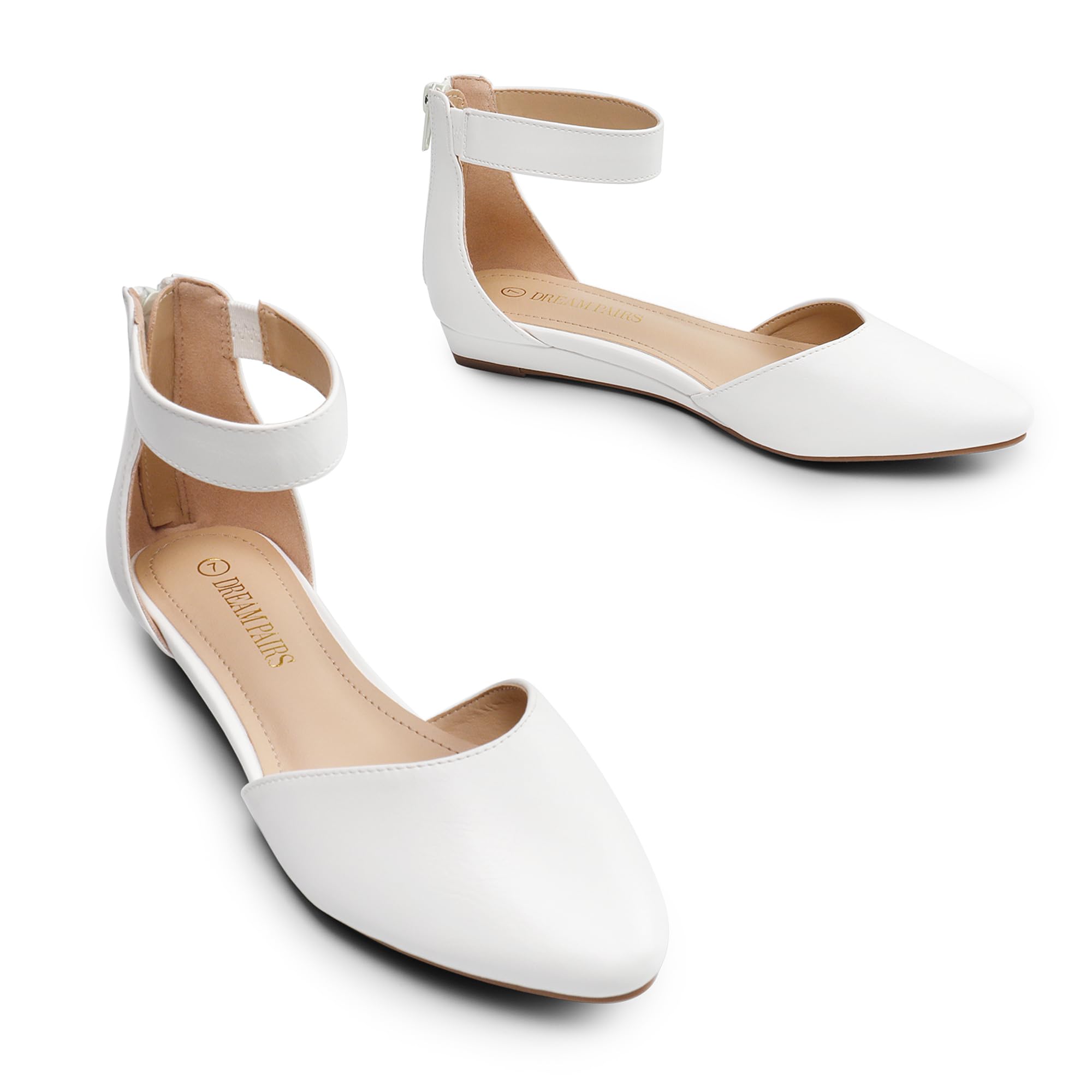 DREAM PAIRS Amiga White Low Wedge Ankle Strap Flats Shoes 12