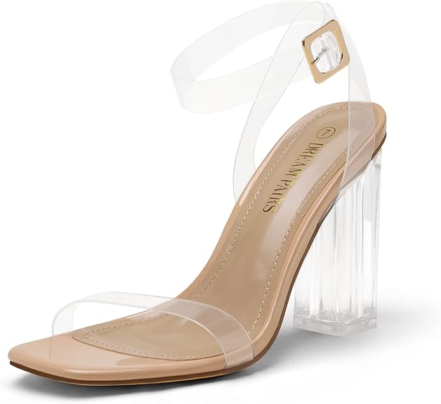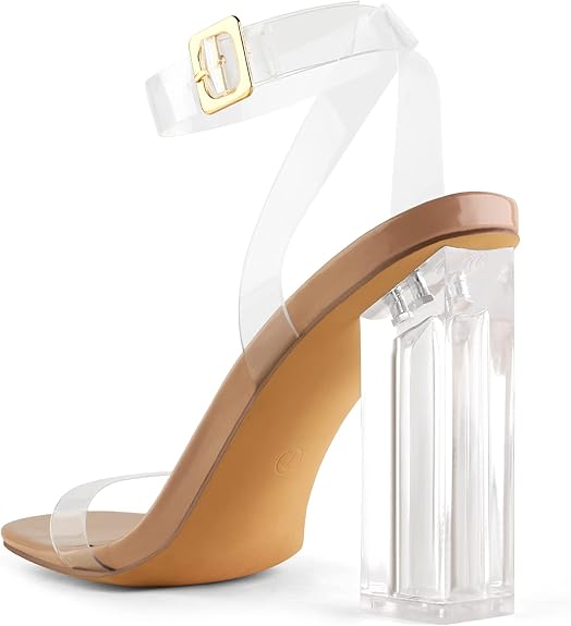 Classic Open Square Toe: Clear high heels sandals show the beautiful curve of your feet. The transparent open square toe design and height create the illusion of longer legs and are perfect for any occasion.