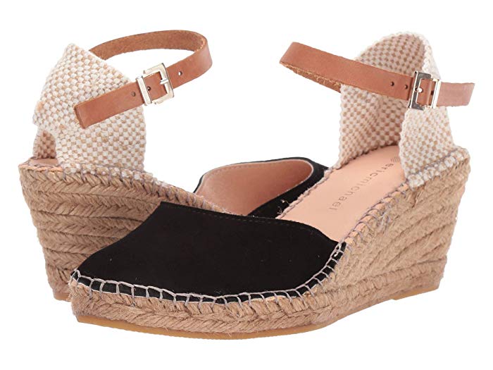 Eric Michael Evie Black White Wedge Espadrille Ankle Strap Closed Sandals Pumps