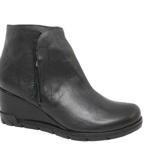 Eric Michael Margot Booties Black Leather Low Wedge Casual Comfort Ankle Booties