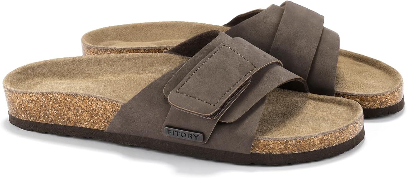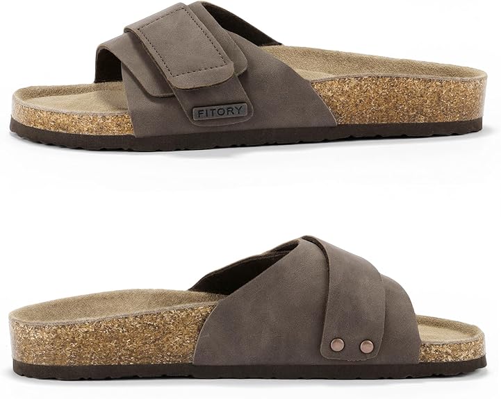 Fitory Womens Flat Suede Brown Casual Slip On Comfortable Open Toe Sandals 8