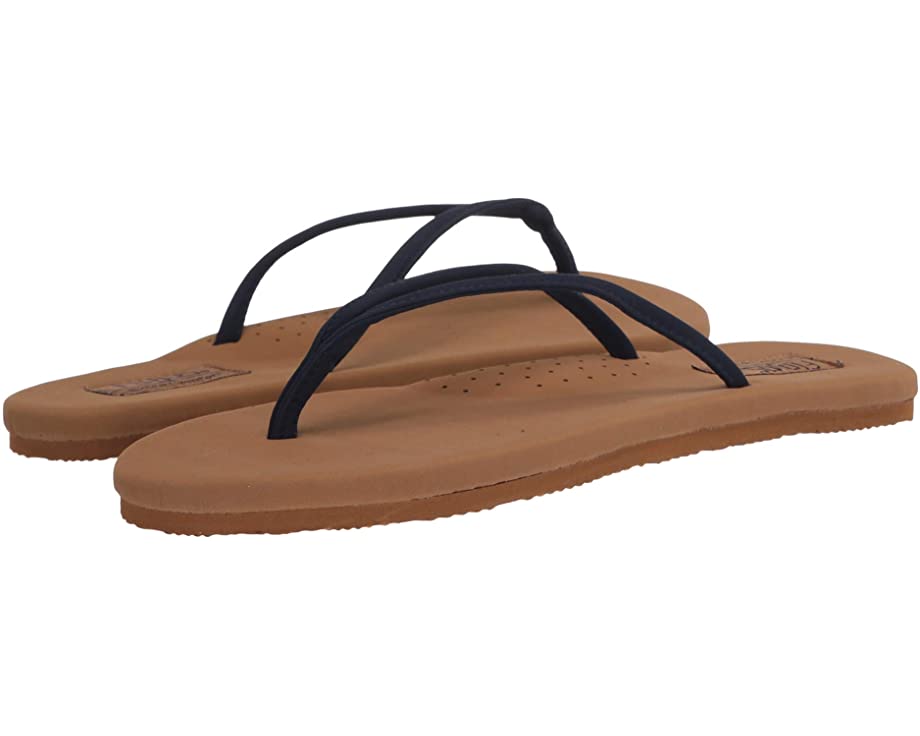 Flojos Fiesta 2.0 Navy/Tan Vintage Slip On Slide Thong Flat Flip Flops Sandals