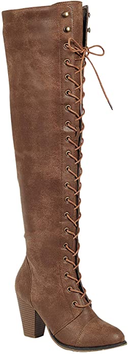 Forever Camila-48 Womens Chunky Heel Lace Up High Riding Boots, Tan