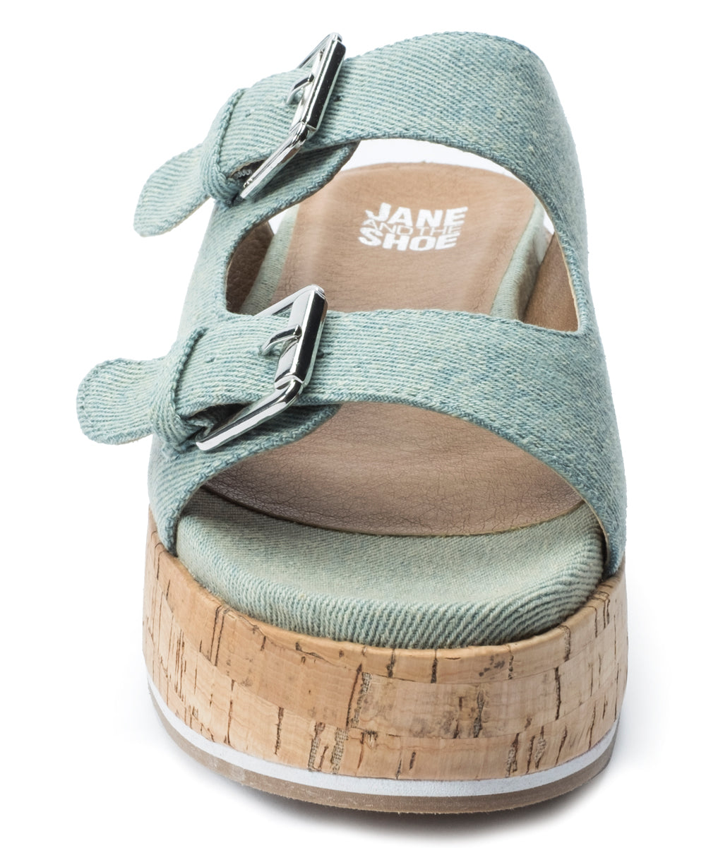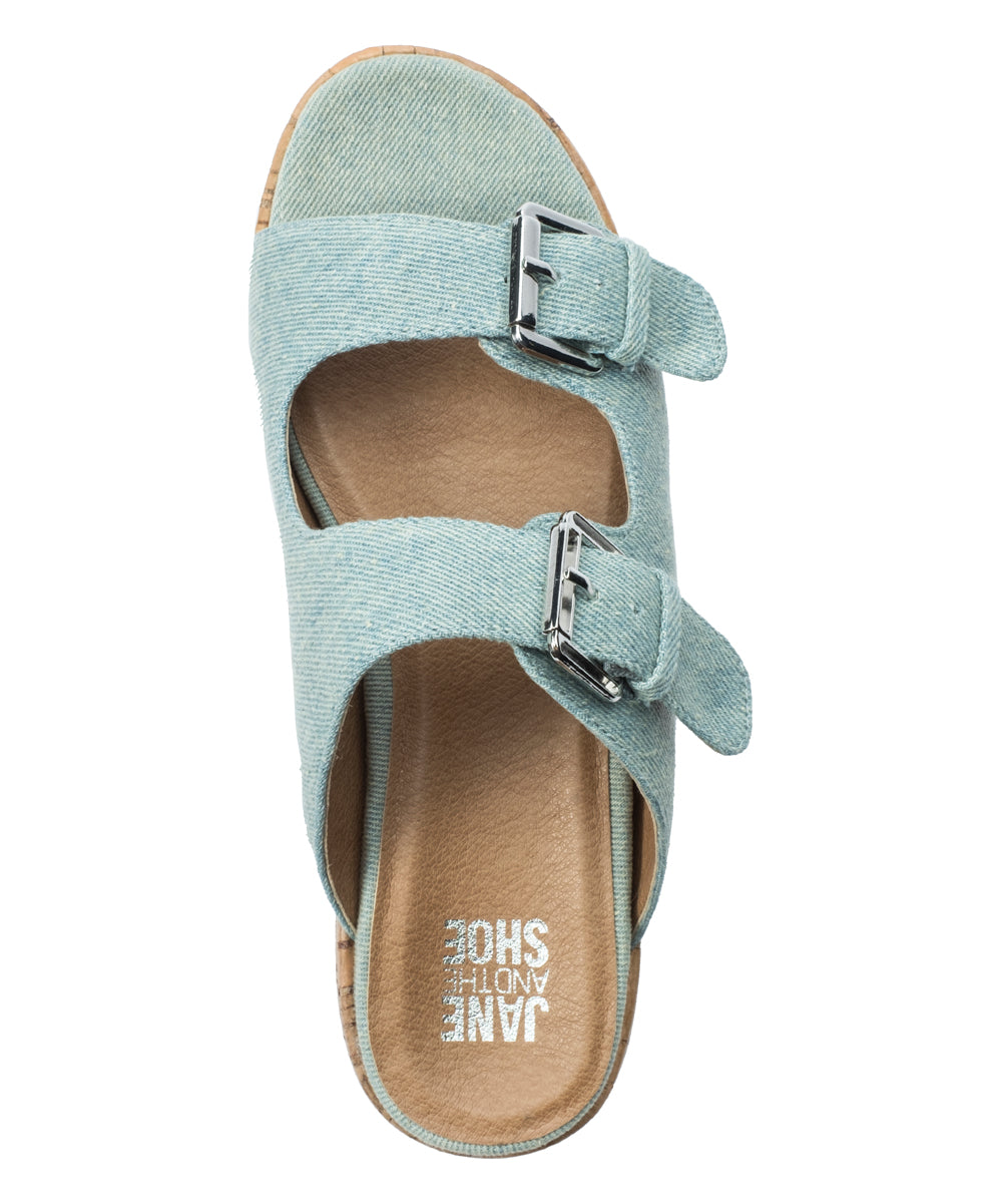 Jane and the Shoe Sandal Light Blue Denim Birken Buckle Mule