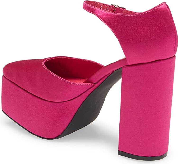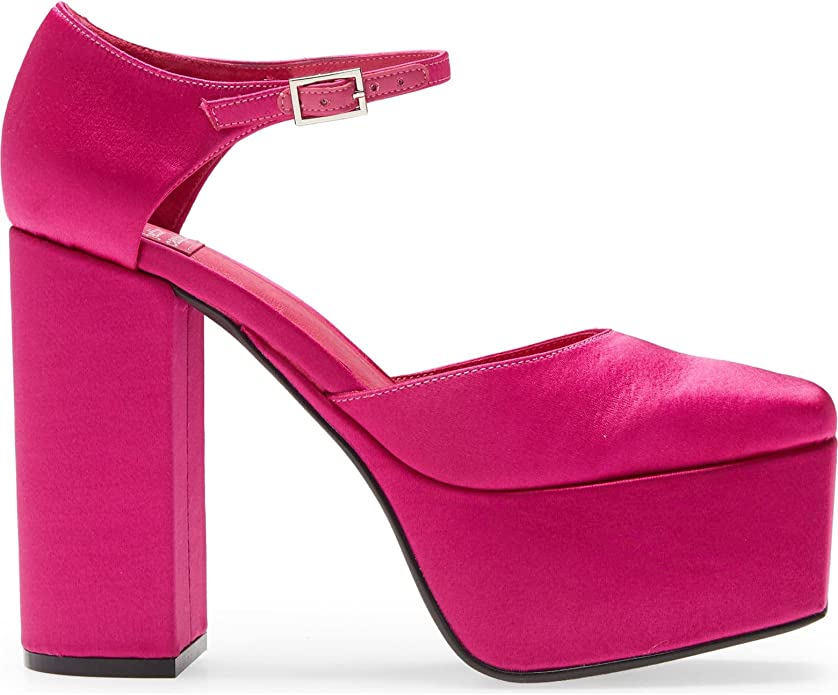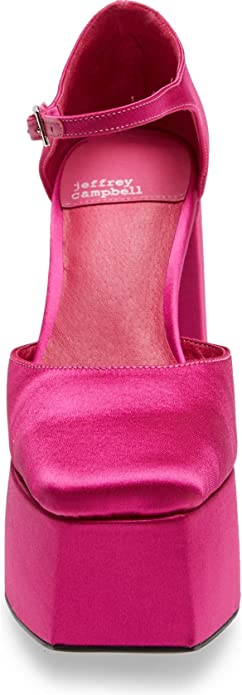 Jeffrey Campbell Ovr-N-Out Fuchsia Satin Square-Toe Ankle Strap Platform Pumps