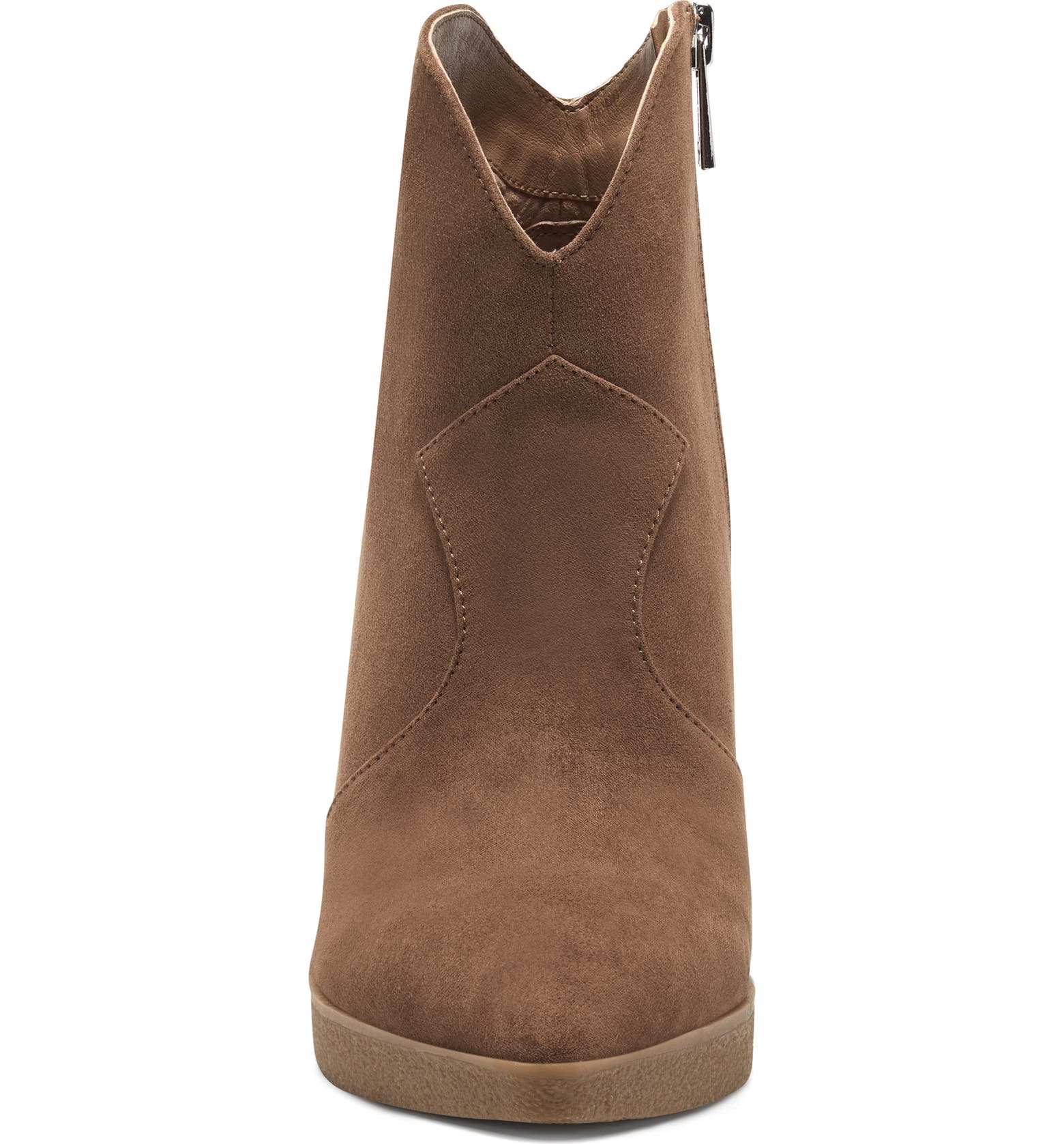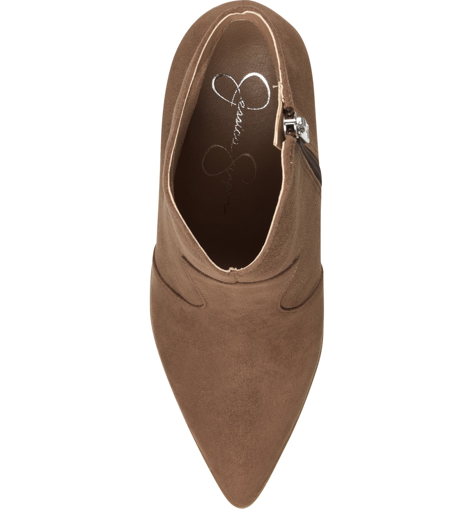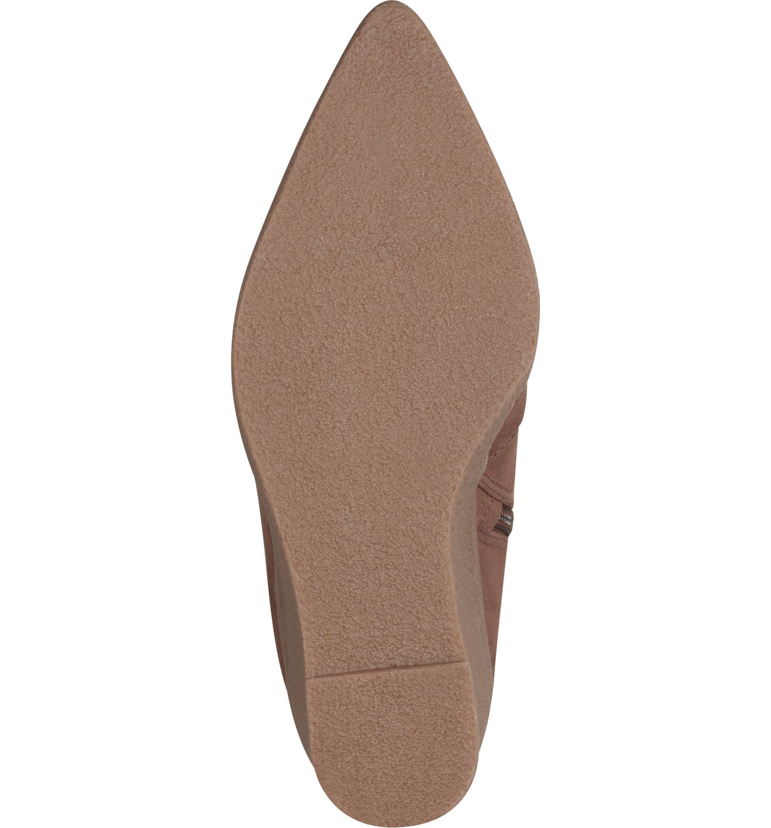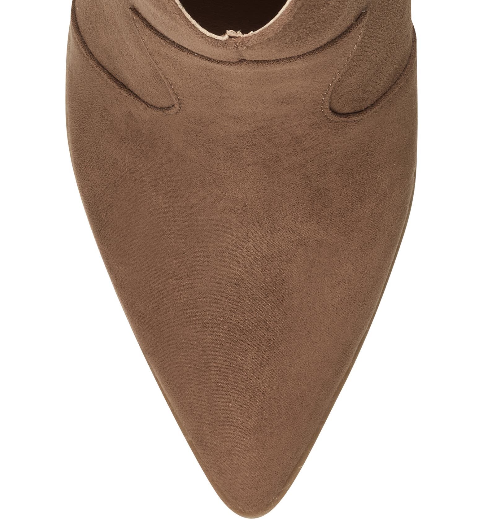 - A textured wedge brings leg-lengthening elevation to this pointy-toe bootie featuring a notched topline and convenient side zip closure.