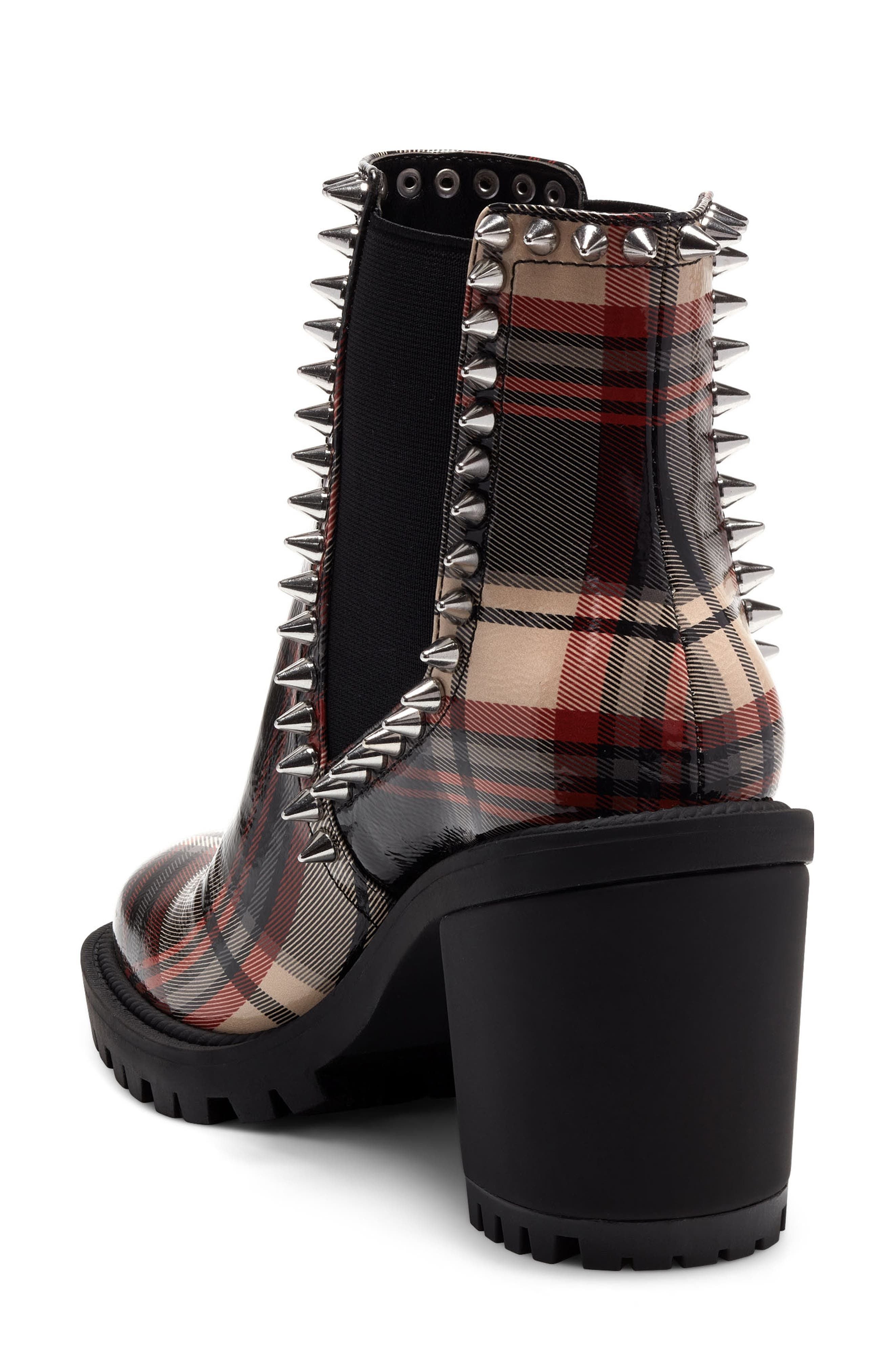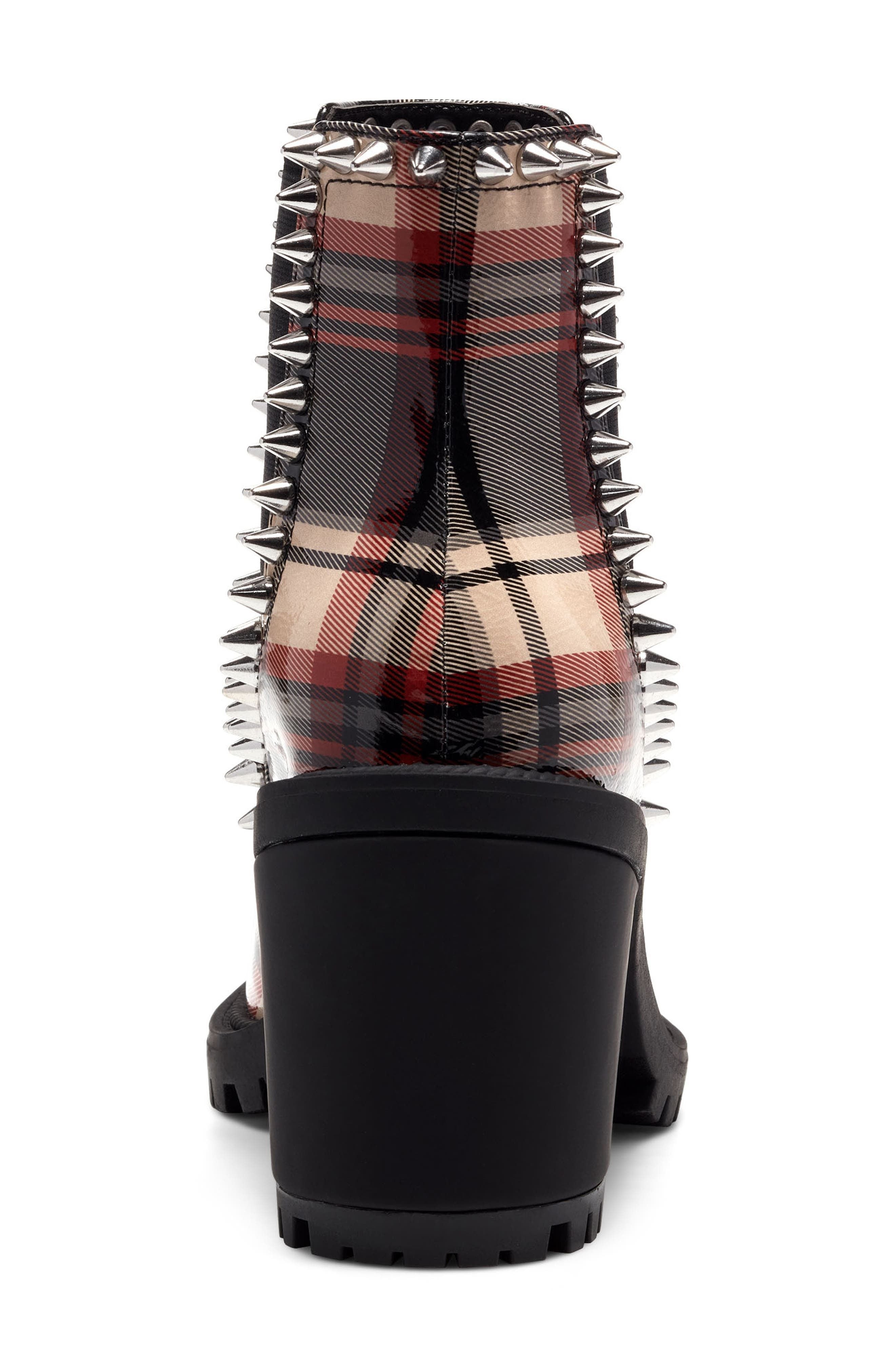 Give some edge to your everyday look with the Demmie boots, accented with conical studs for a distinct look and is supported with a block-heeled rubber sole for confident struts.