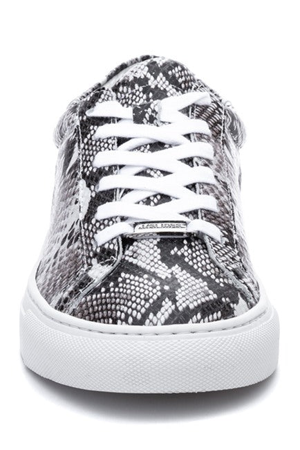 JSlides Women's LUCKI Lace-up Round toe Platform Sneaker, BLACK/WHITE EMB