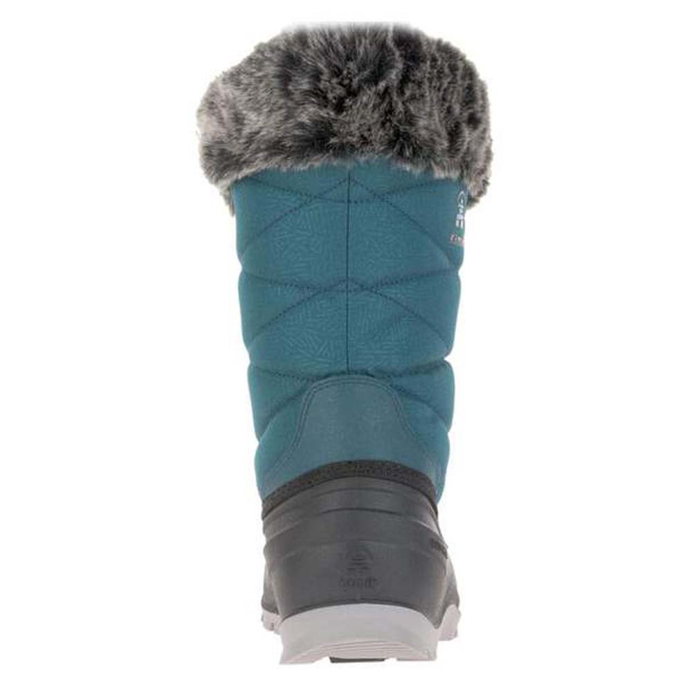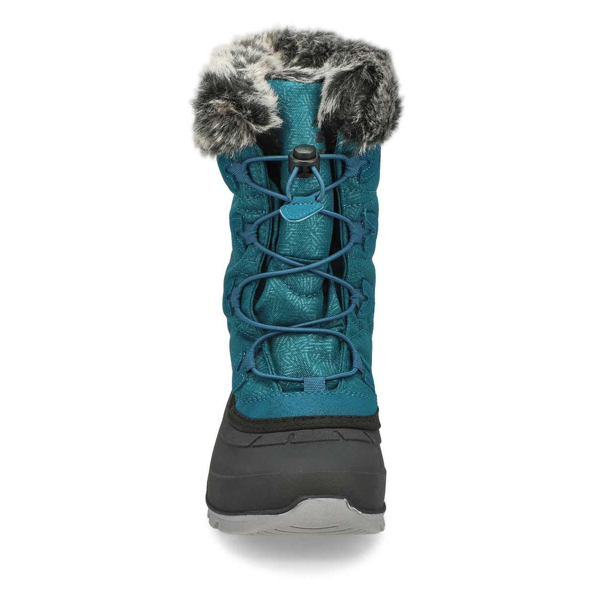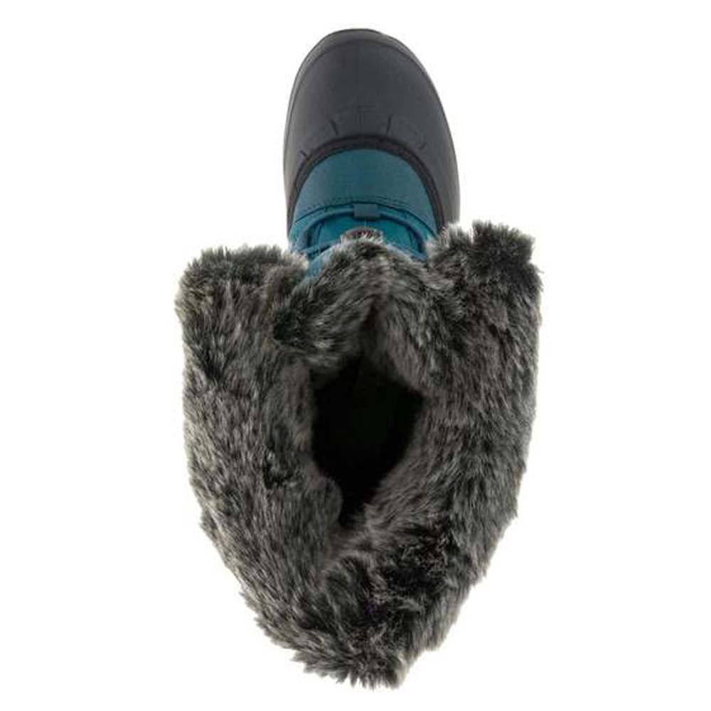 A subtle print, faux fur lining, and embossed lacing graphics add femininity to this techy snow boot. Seam-sealed waterproof snow boot featuring plush faux-fur collar, quick bungee lacing, and grippy PEAK snow and ice traction sole