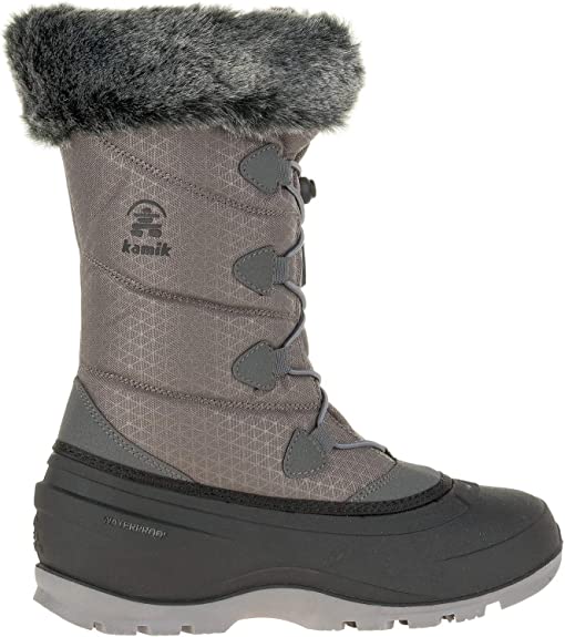 Kamik Momentum2 Charcoal Pull On Round Toe Waterproof Fur Trim Ankle Snow Boots