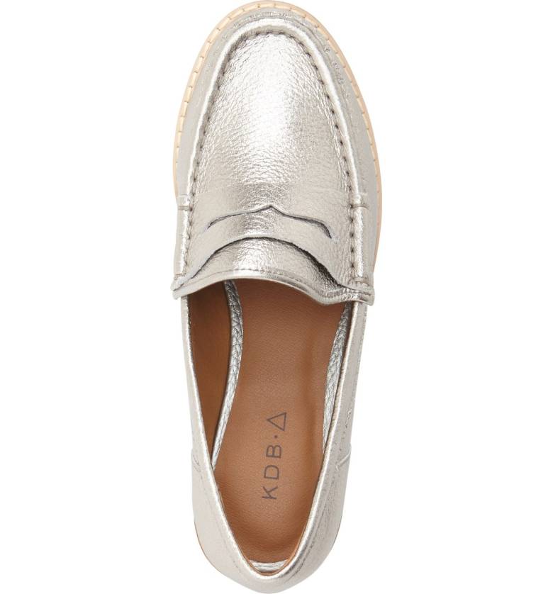 Kelsi Dagger BROOKLYN Gabby Platinum Penny Loafer Fashion Low Block Heel Mocassin