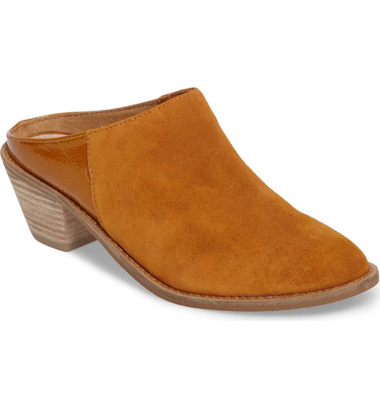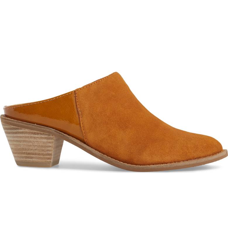 Kelsi Dagger Kellum Whiskey Brown Fashion Suede Clog Stacked Heel Mule Booties