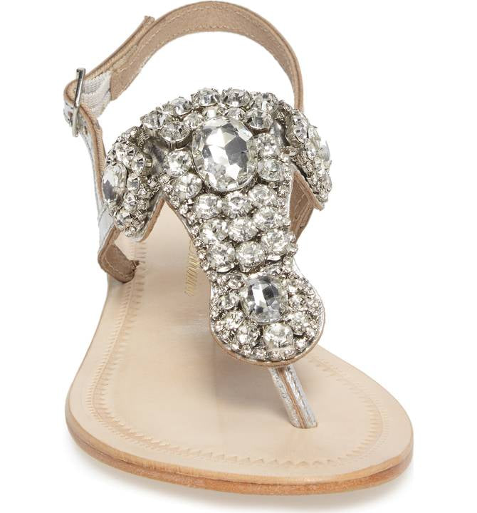 Lauren Lorraine Bahama Silver Gem Crystal Embellished Flat Thong Beach Sandals