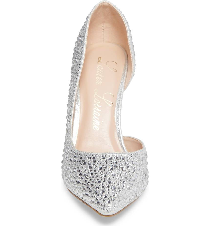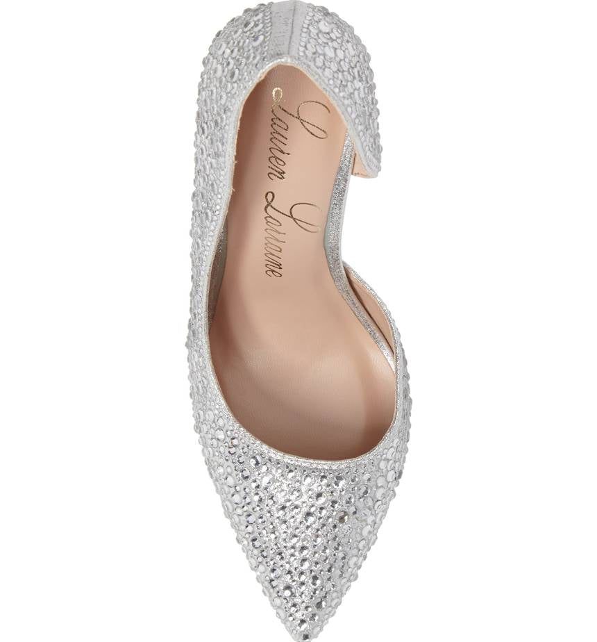 Lauren Lorraine Ruby Silver Shimmer Rhinestone Embellished Half Pointed Pumps