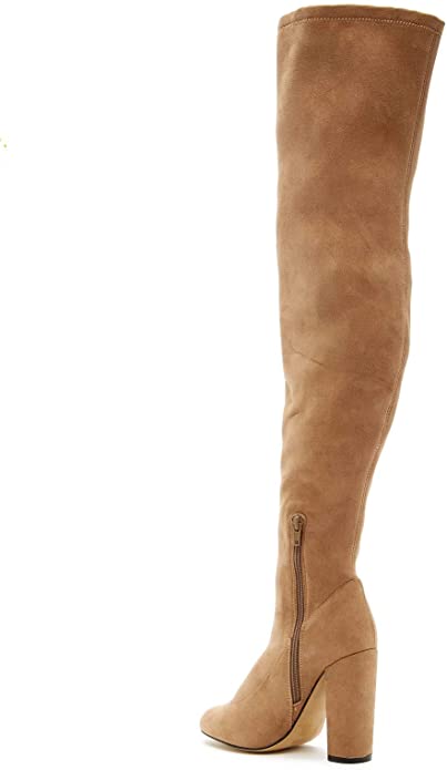 TAKE ME HIGHER - WINE VELVET The new season calls for an effortless approach to styling, transition easily with our miss new bootie! Not only do they fit like a dream, when teamed with a suede mini, it’s a look that’s sure to get people talking! TAKE ME HIGHER features a round toe, chunky heel, scuba material, thigh high construction, side zipper closure and a lightly padded insole for comfort.